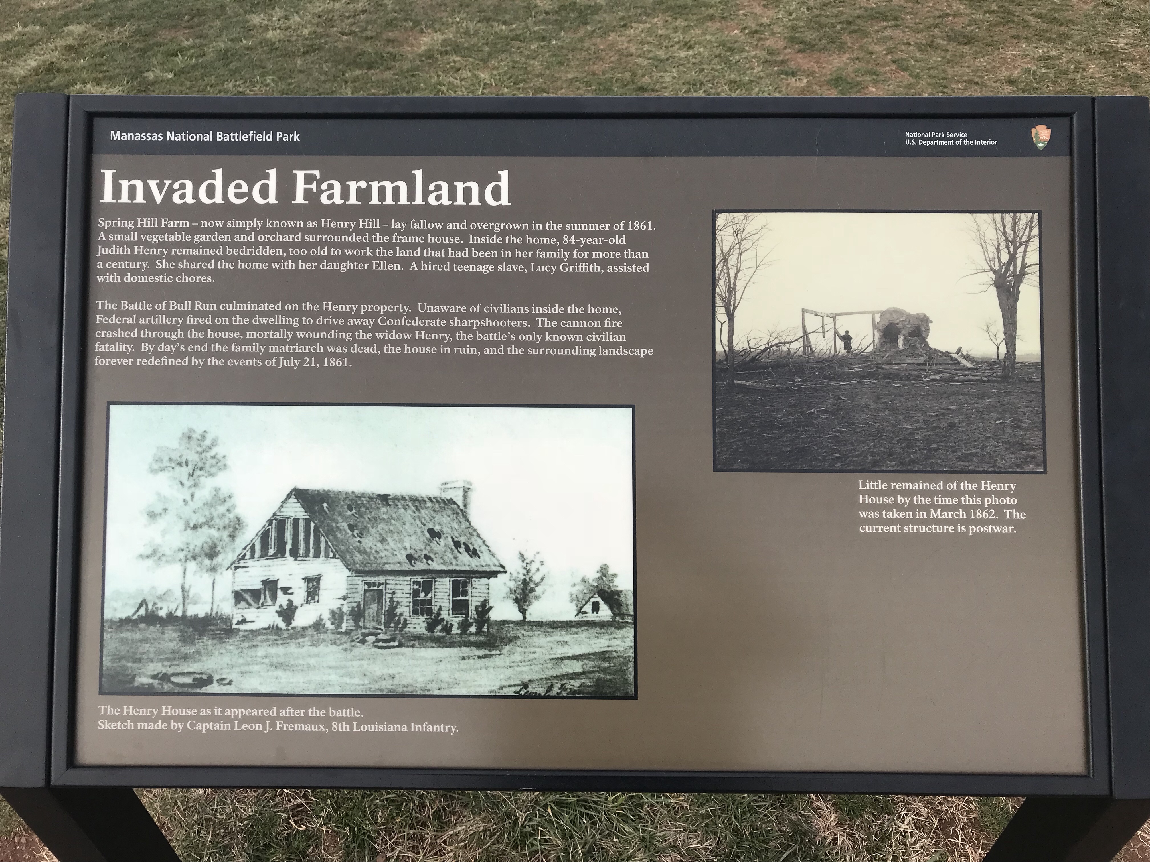 The Manassas National Battlefield Park preserves the location of two important battles in the Civil War which are named after the small stream that runs through the land: First Battle of Bull Run and Second Battle of Bull Run.