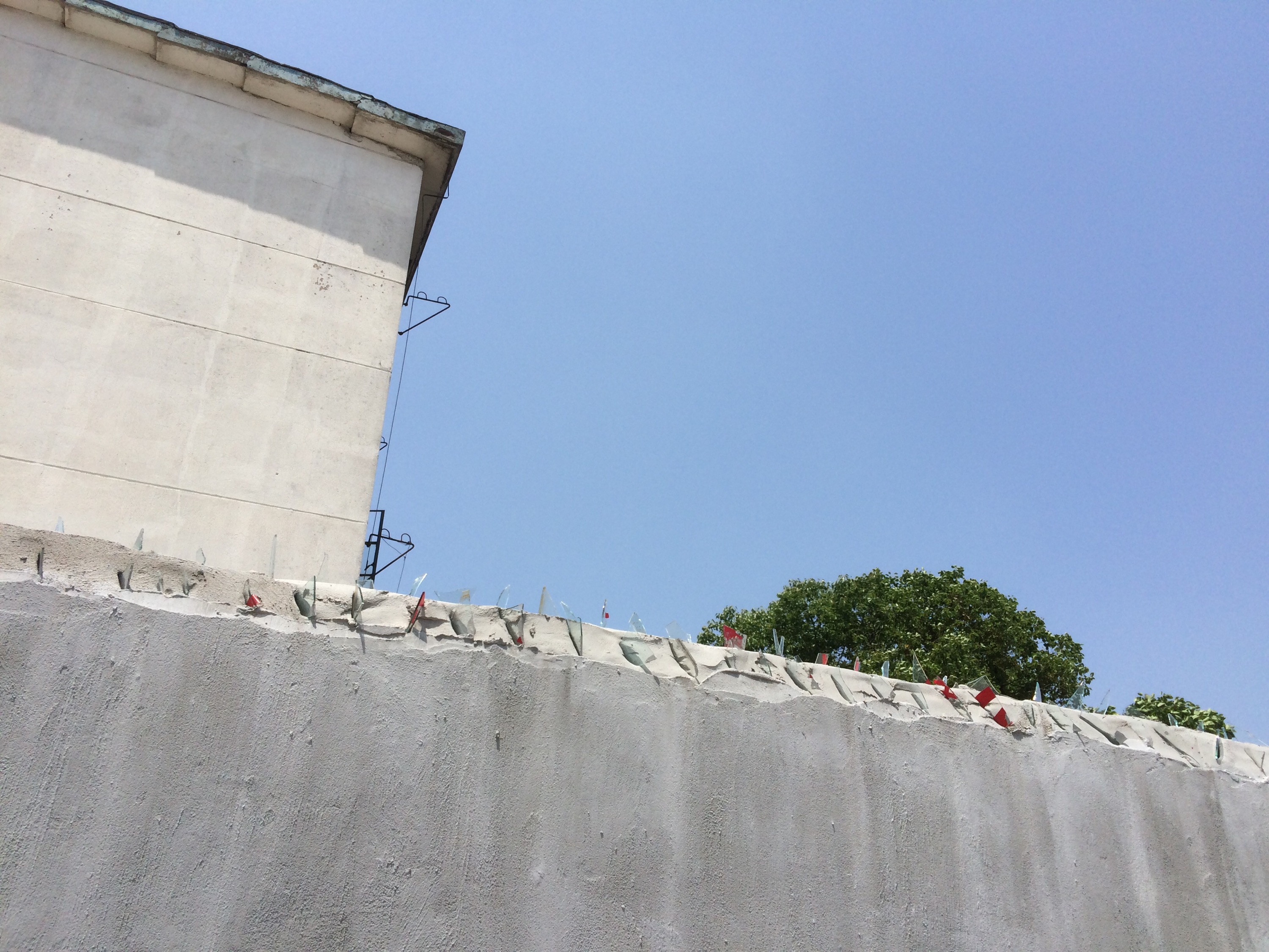 Some even had newly-built fifteen foot walls with shards of glass embedded at the top like barbed wire. Protecting more trees and buildings and God knows what.