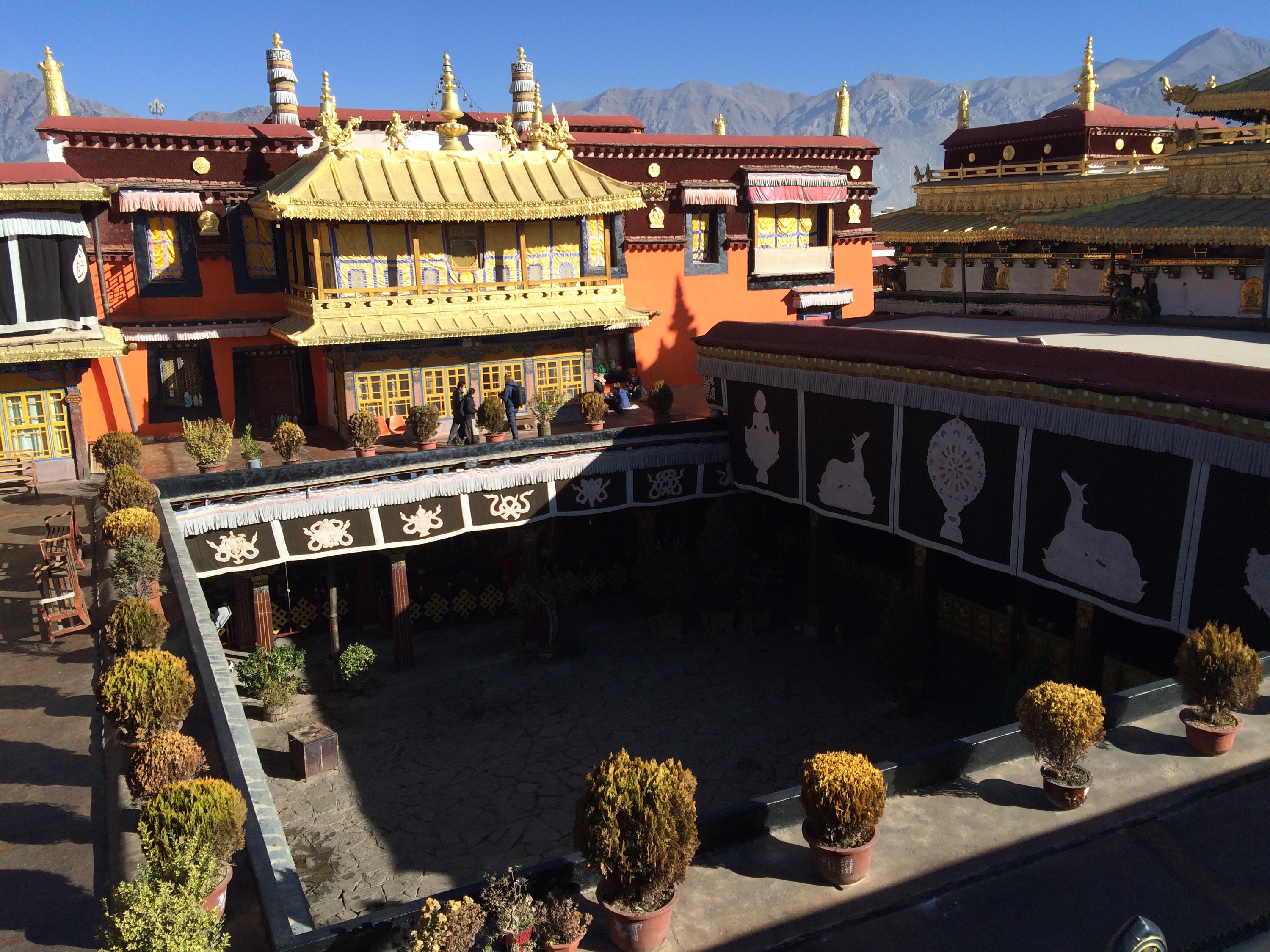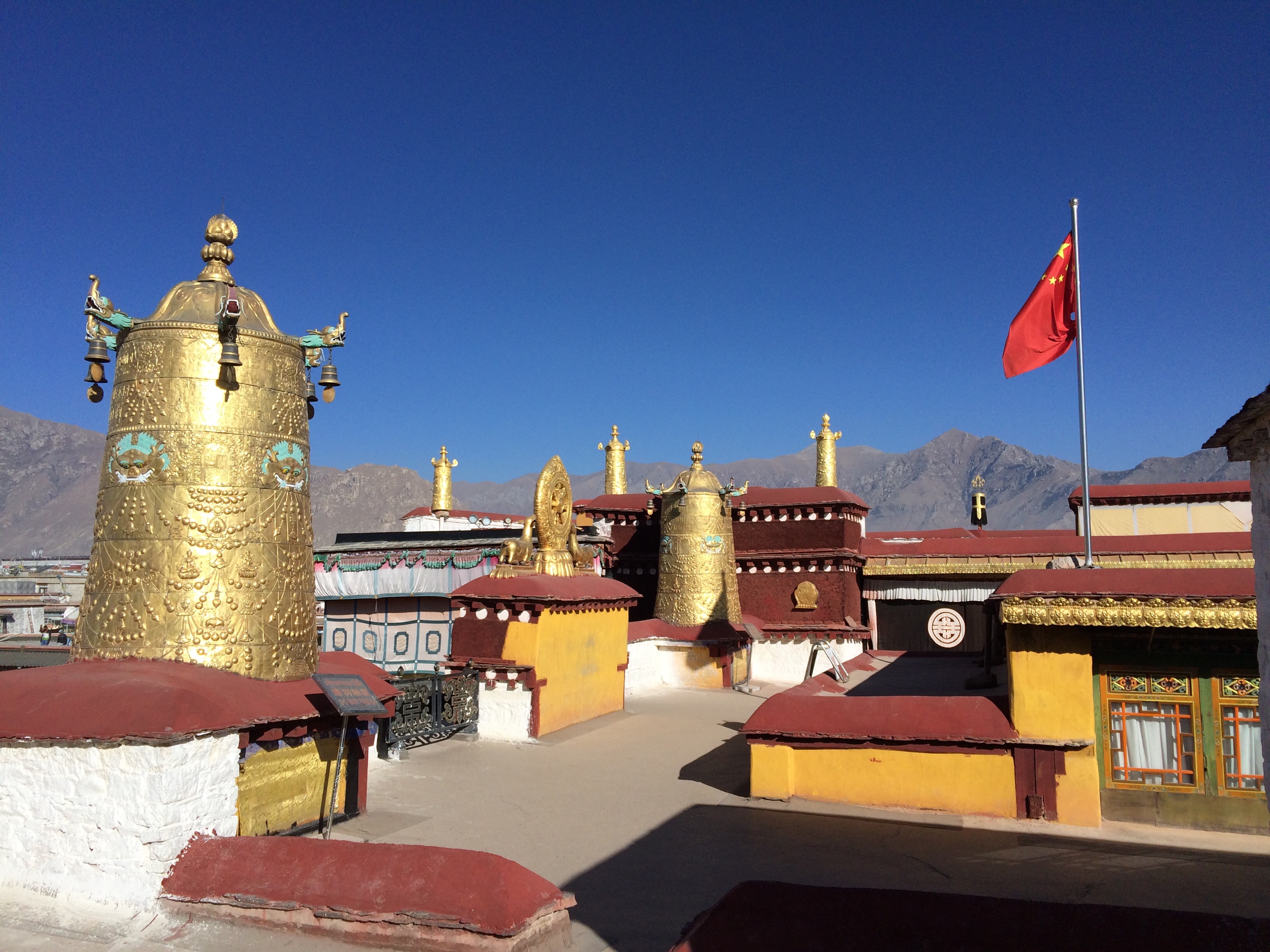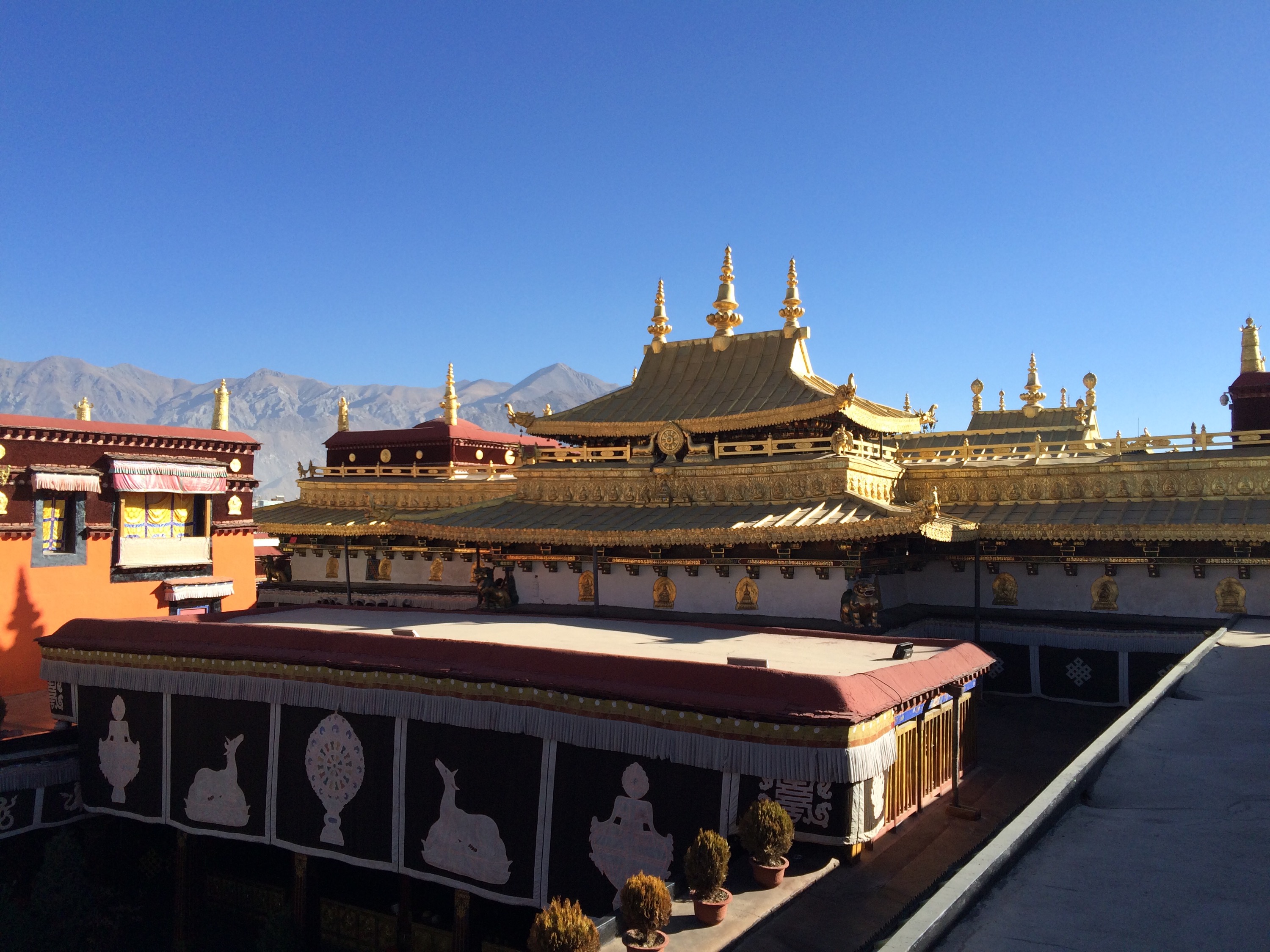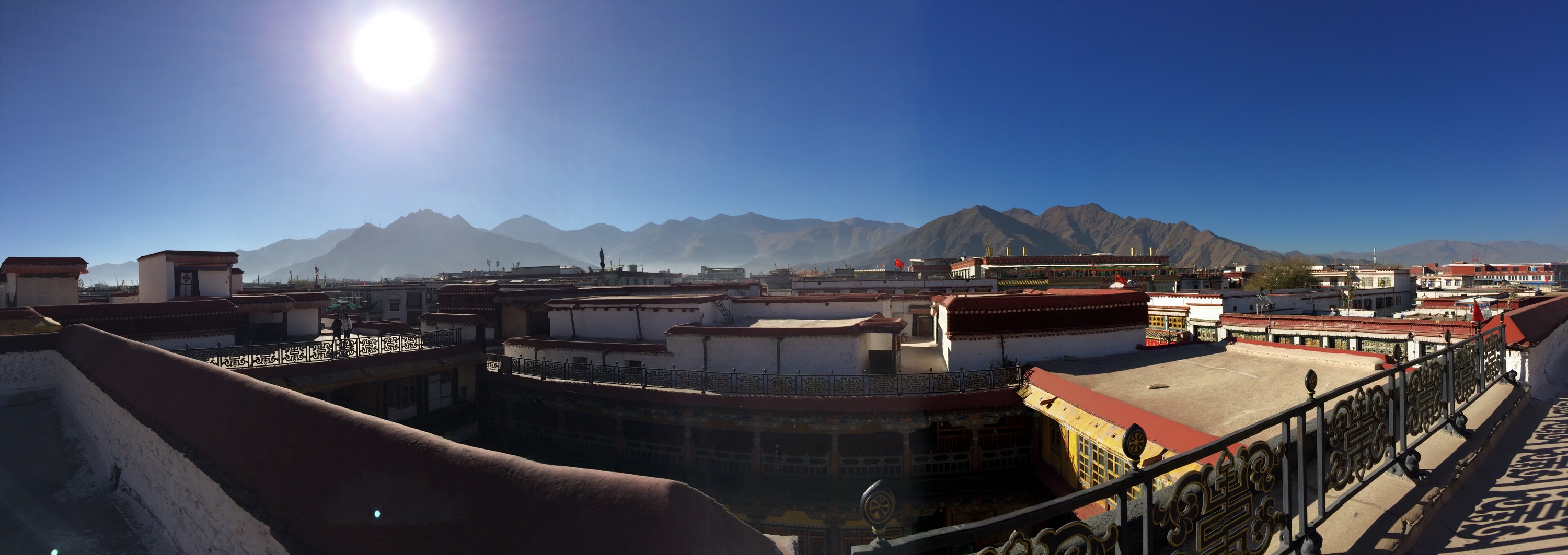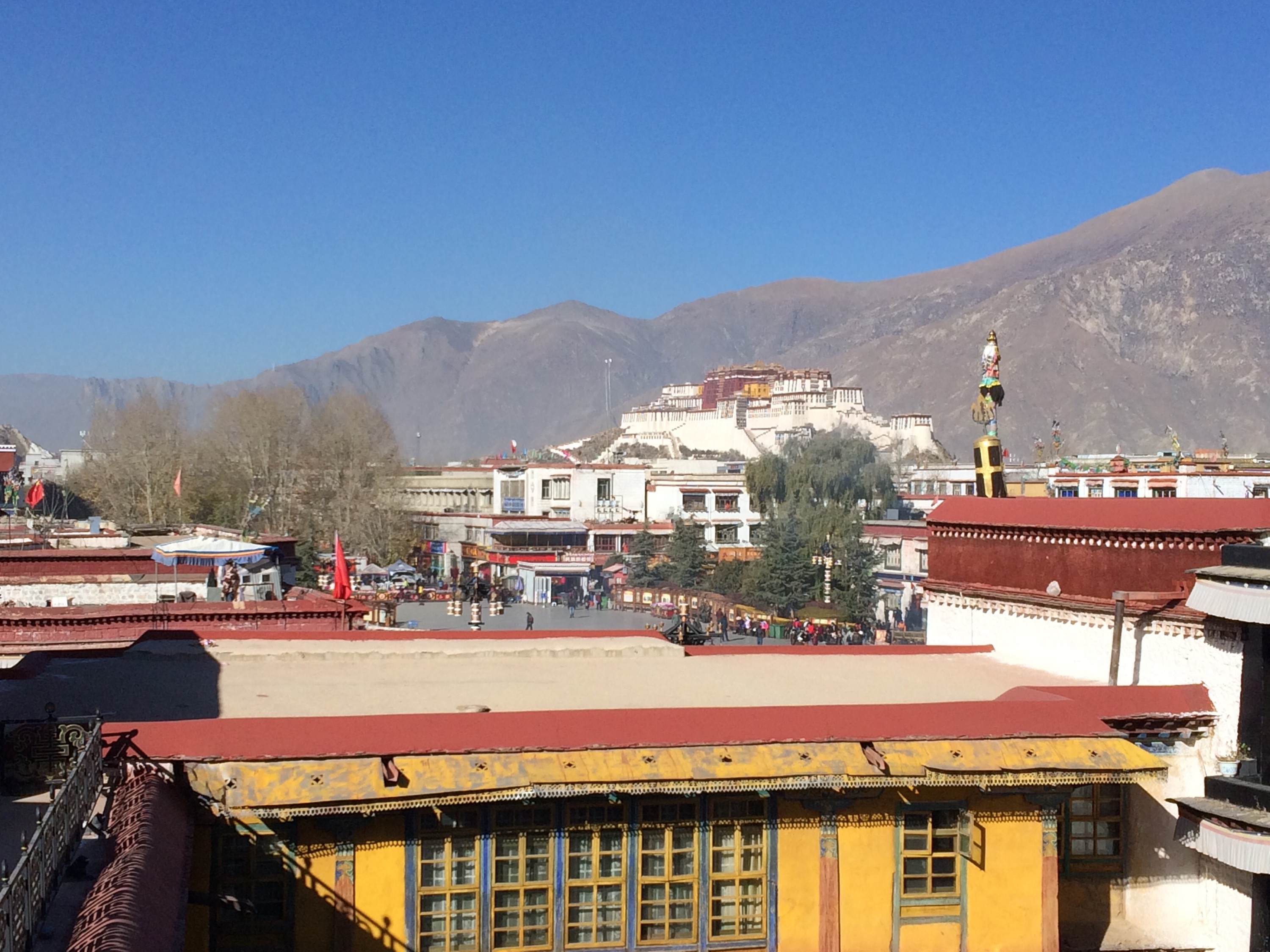 From the rooftop, you can see the Potala Palace in the distance.