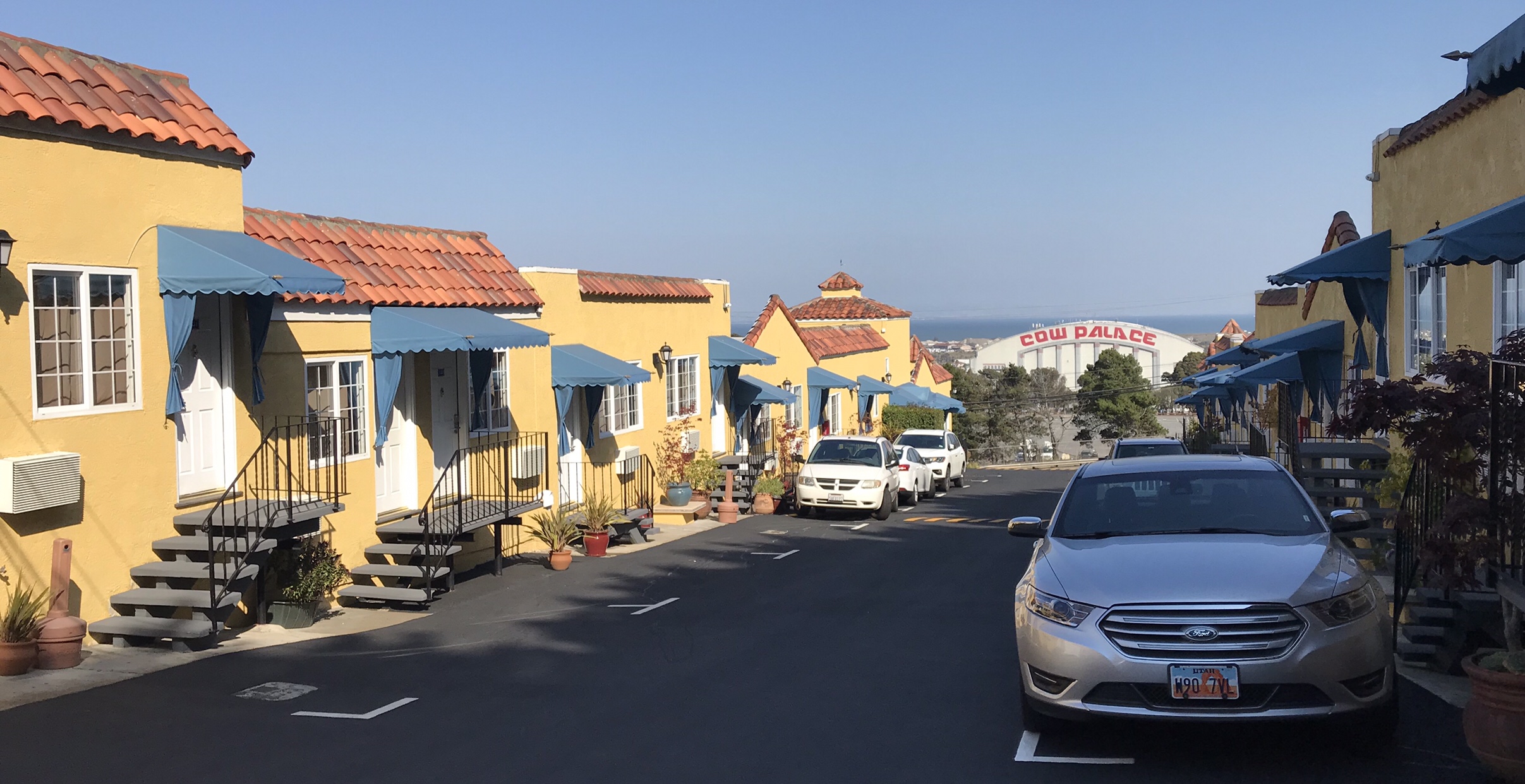 For the final leg of my farewell tour, I went up to visit friends in the Bay. Stayed at a charming boutique motel just south of the City near the Cow Palace with the bay visible beyond it.