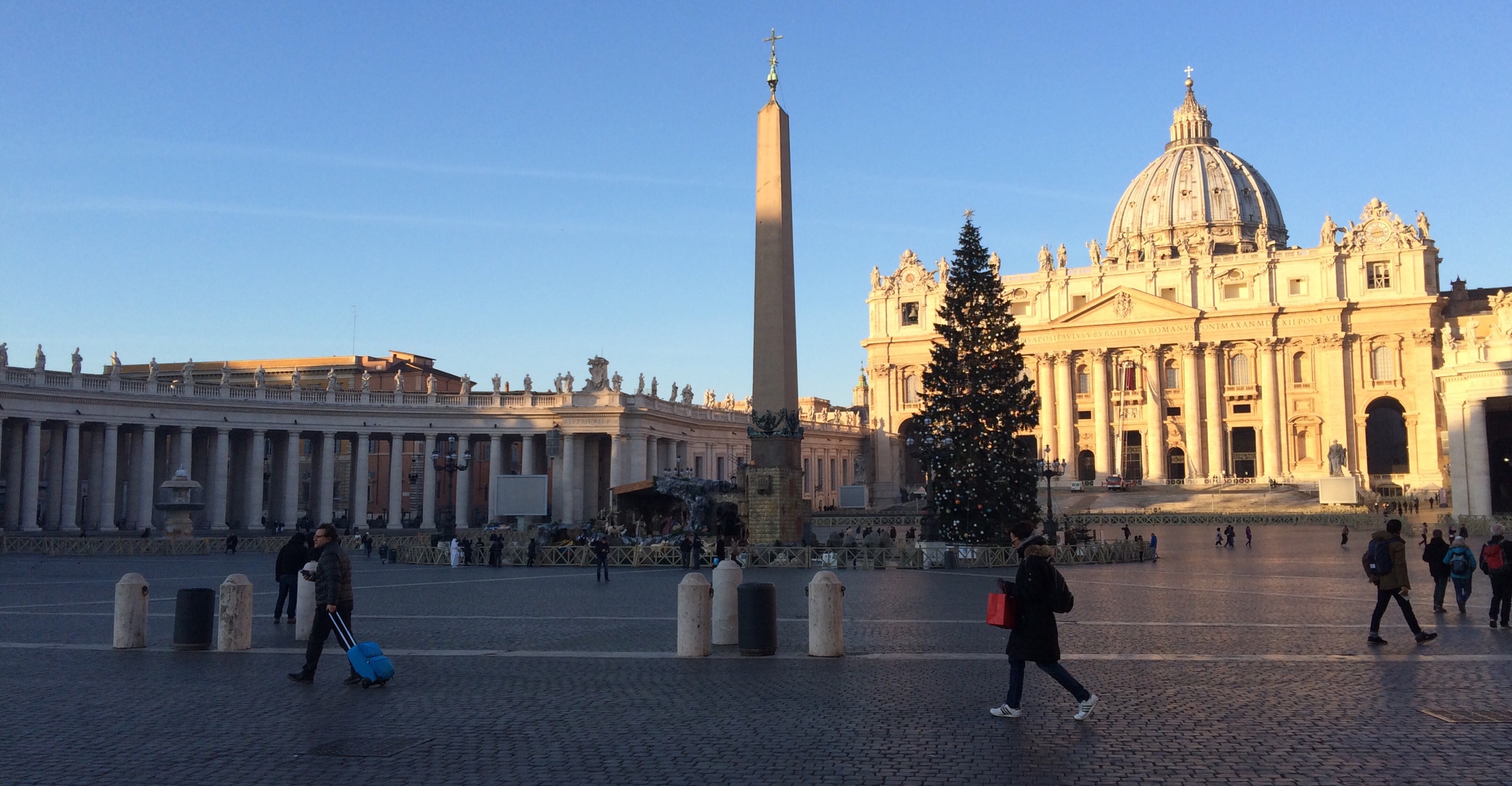 I never realized that Vatican City is on the “Pudong” side of the river, opposite of ancient Rome. I took the Metro under the Tiber and walked to St. Peter’s Square. Bit of a misnomer as it is more of an oval, resembling “arms of Mother Church” reaching out from St. Peter’s Basilica. At the center of the oval, an Egyptian obelisk was erected in 1586. Because why not. The square itself was built a century later.
