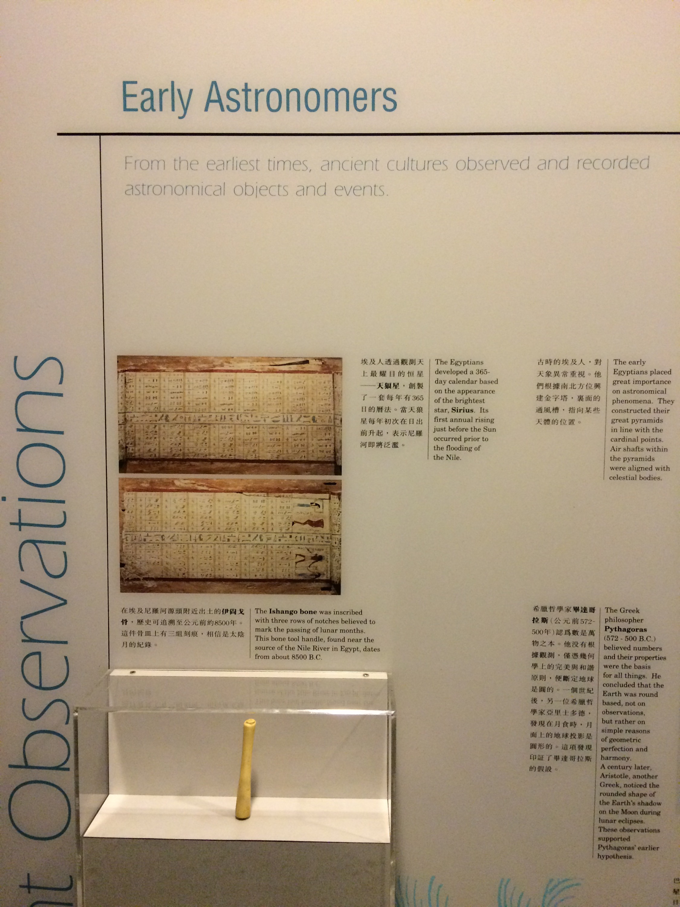 Because the calligraphy and antiquities wings of the Hong Kong Museum of Art were both closed, I ended up at the Hong Kong Space Museum after not too long. Nice to see the history of astronomy start with the Chinese for once.