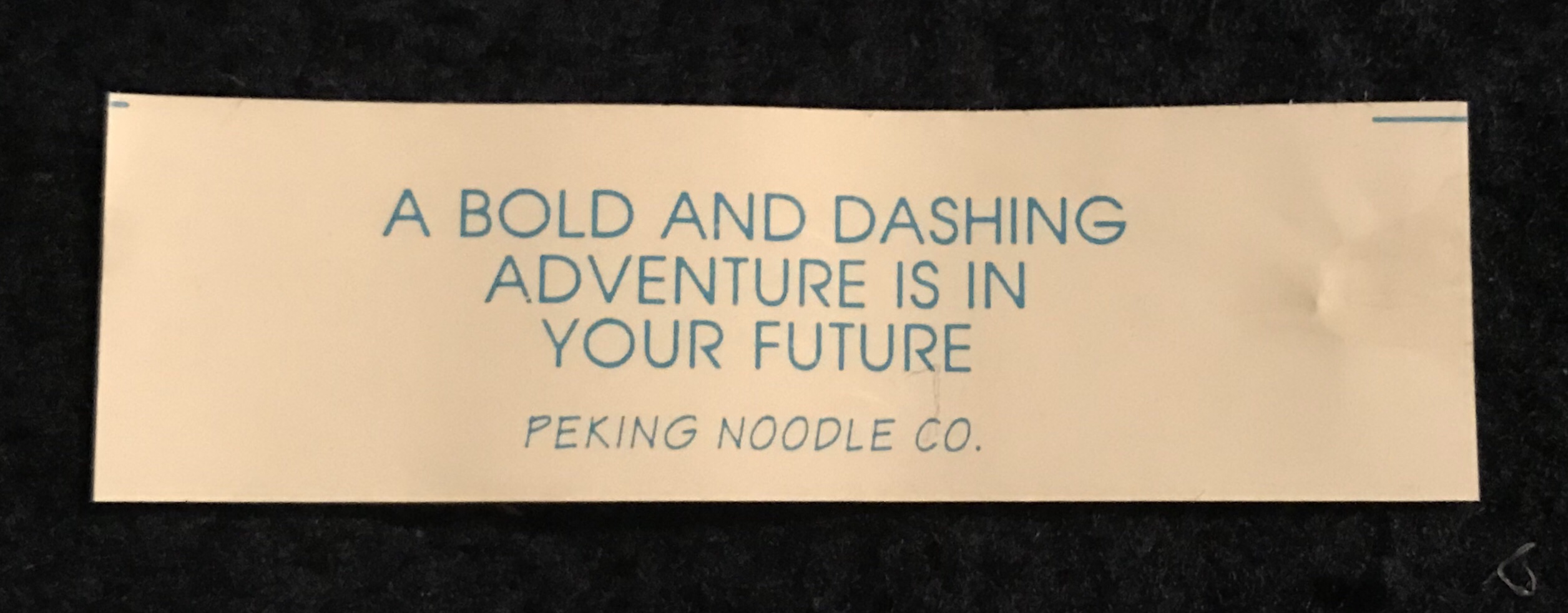 While landing at JFK, found this (ancient) fortune cookie fortune wedged in my notepad.  Seem auspicious.