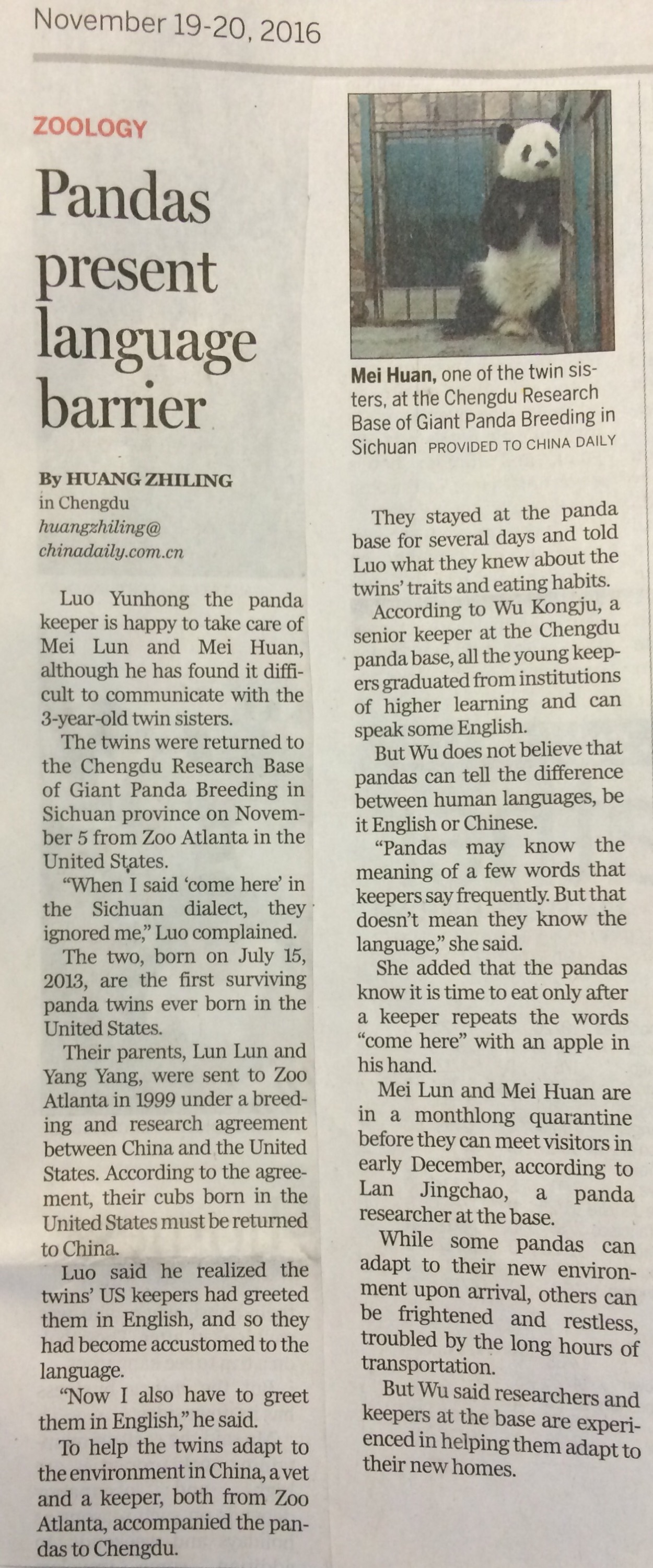 On this year’s trip to Chengdu on our way to Tibet, we noticed this article in the China Daily: