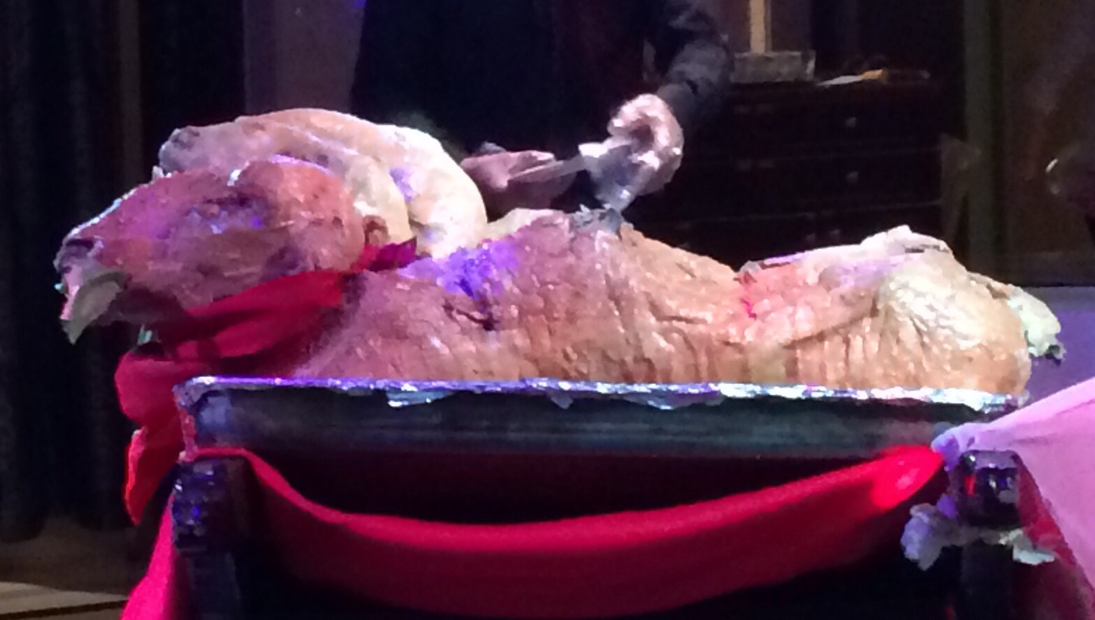 We had the Kung Fu Panda Dubai Ride wrap dinner at a Xinjiang restaurant. We ordered four whole roasted lamb for the crew.