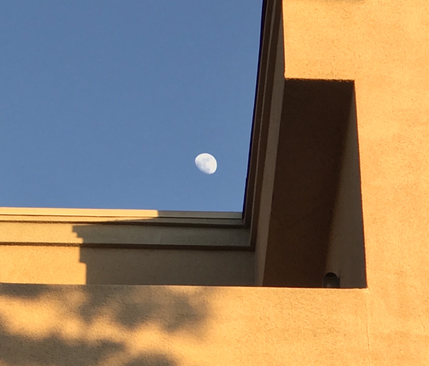 At my father’s memorial gathering, I was struck by the view of the moon over the apartment building next door from the Young family home.