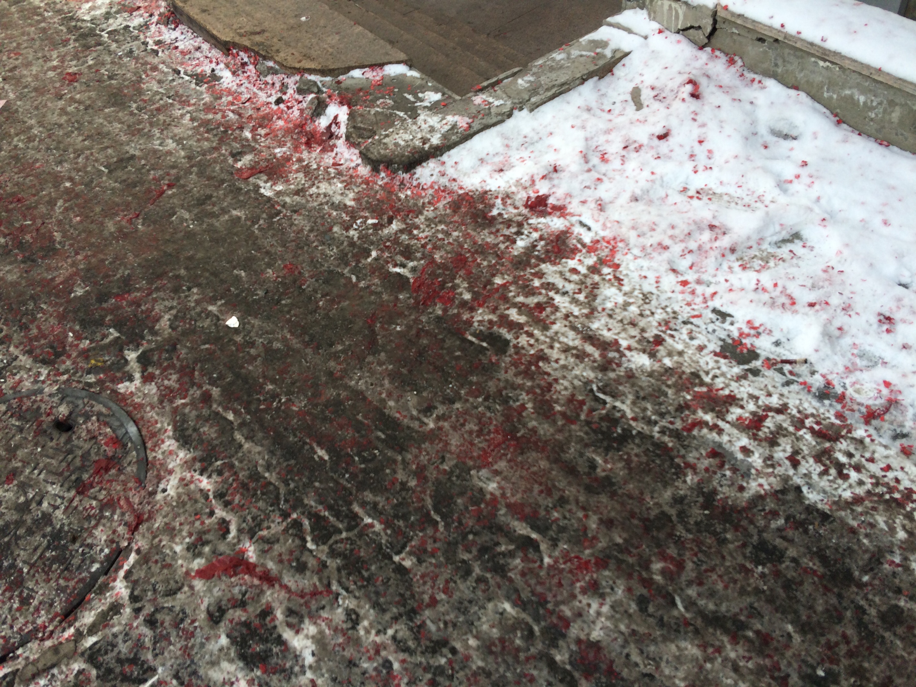 This picture sums up my Chinese New Year in Ürümqi: firecracker debris in the snow.
