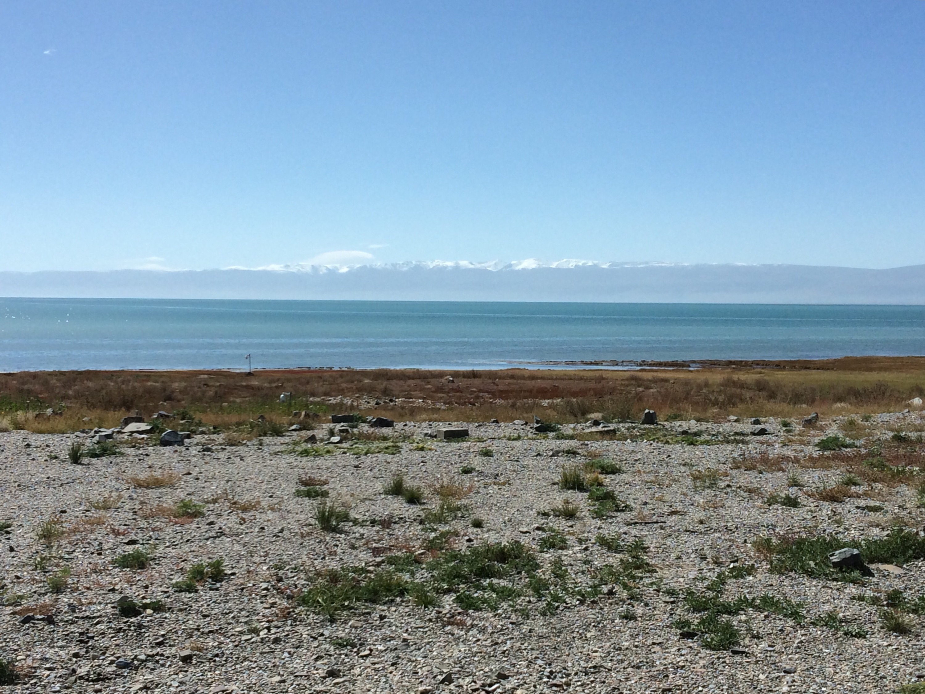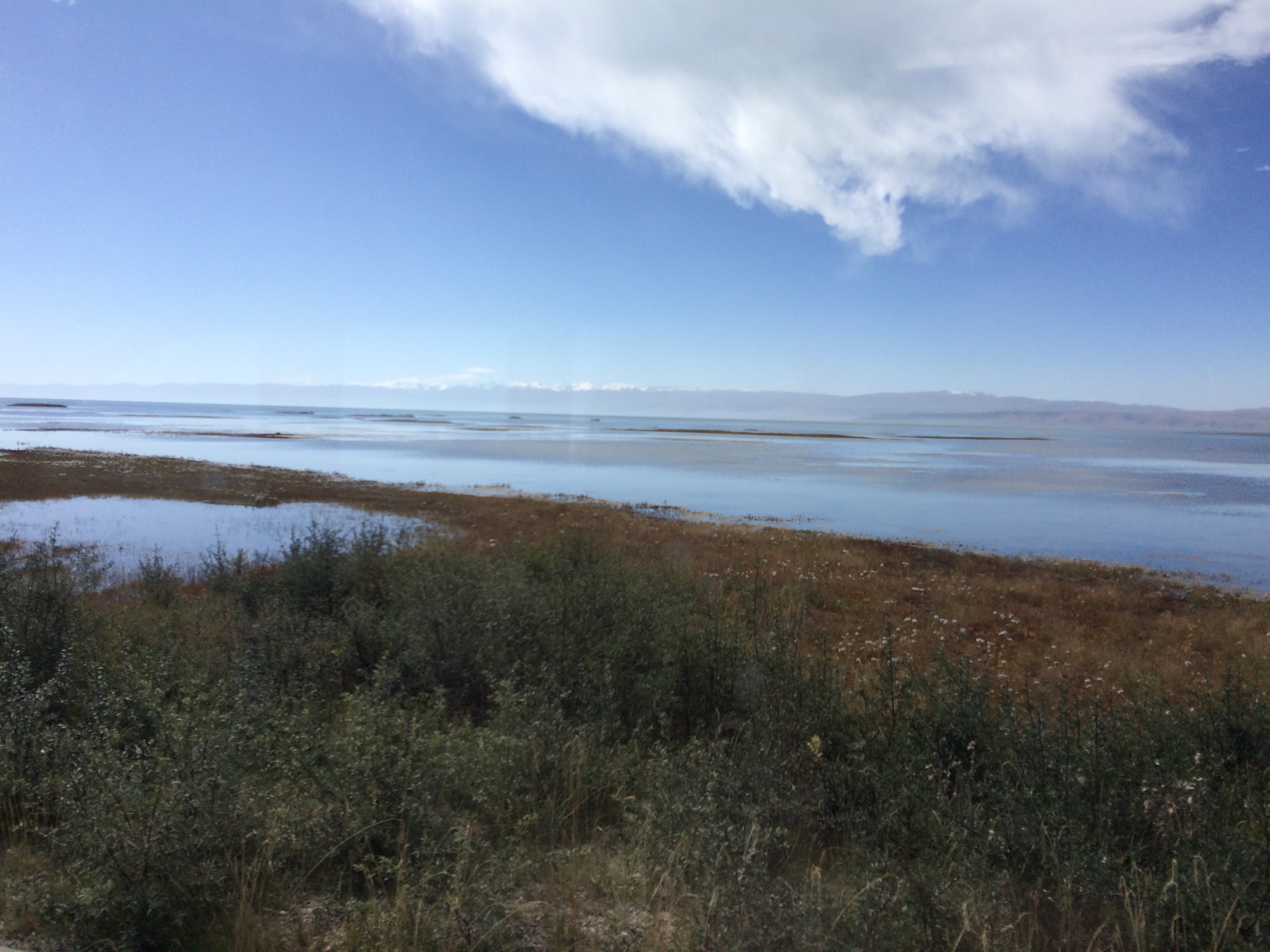 Outside, I could see snow-capped Qinghai South Mountains past the lake on one side…