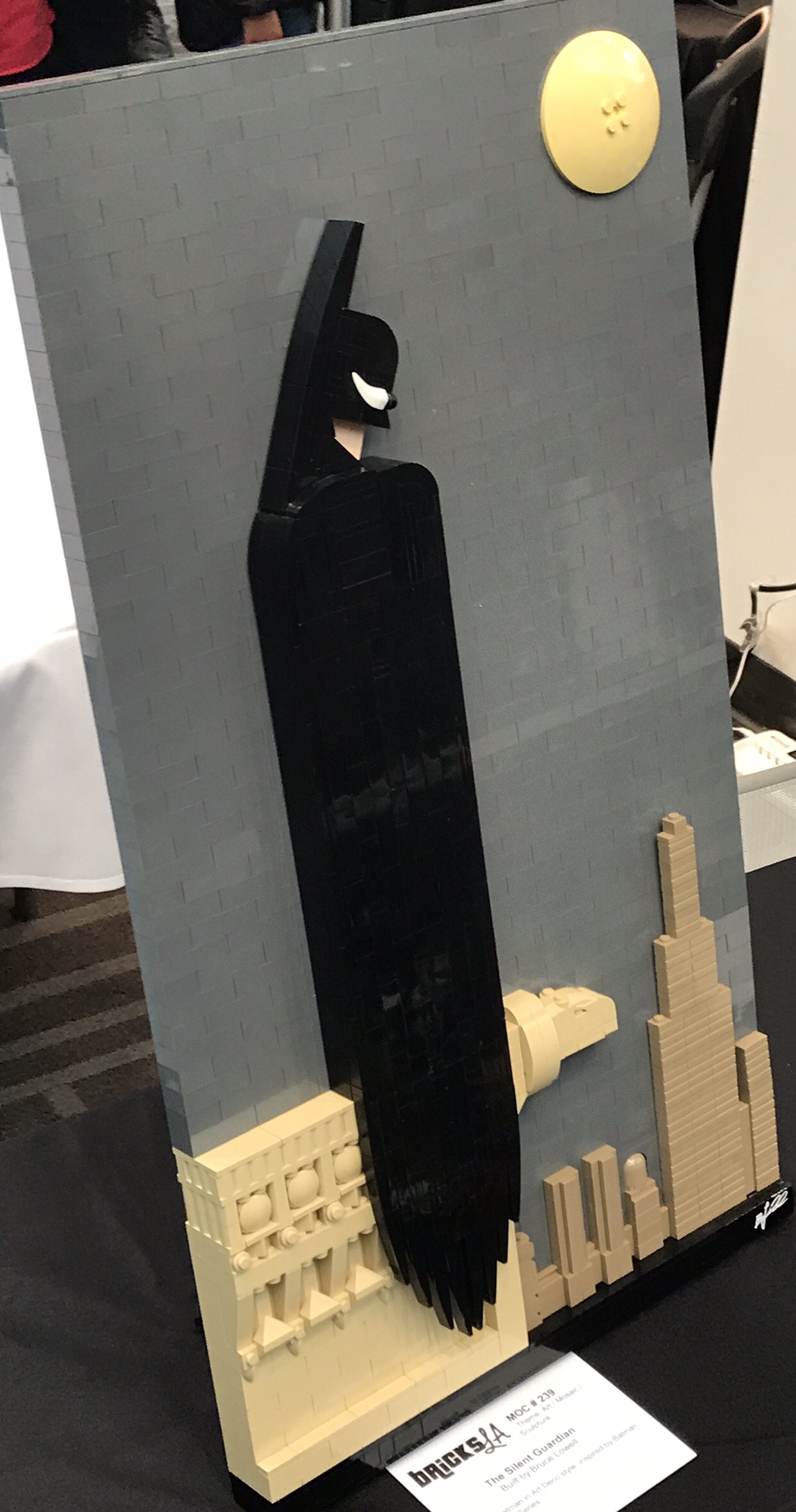 I loved this sideways-built portrait of the Dark Knight overlooking Gotham.