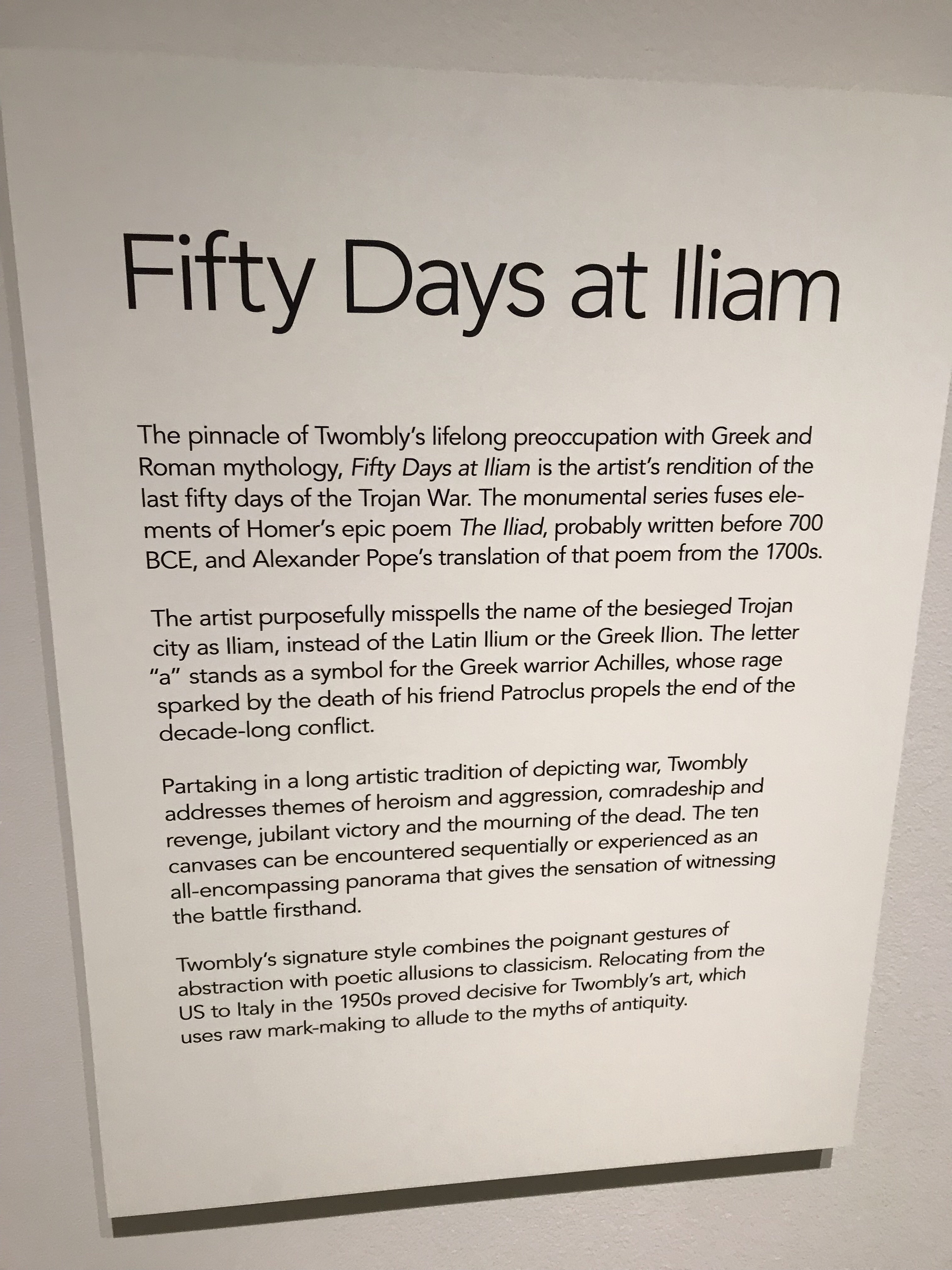 Cy Twombly‘s abstract series inspired by The Iliad drew my attention.