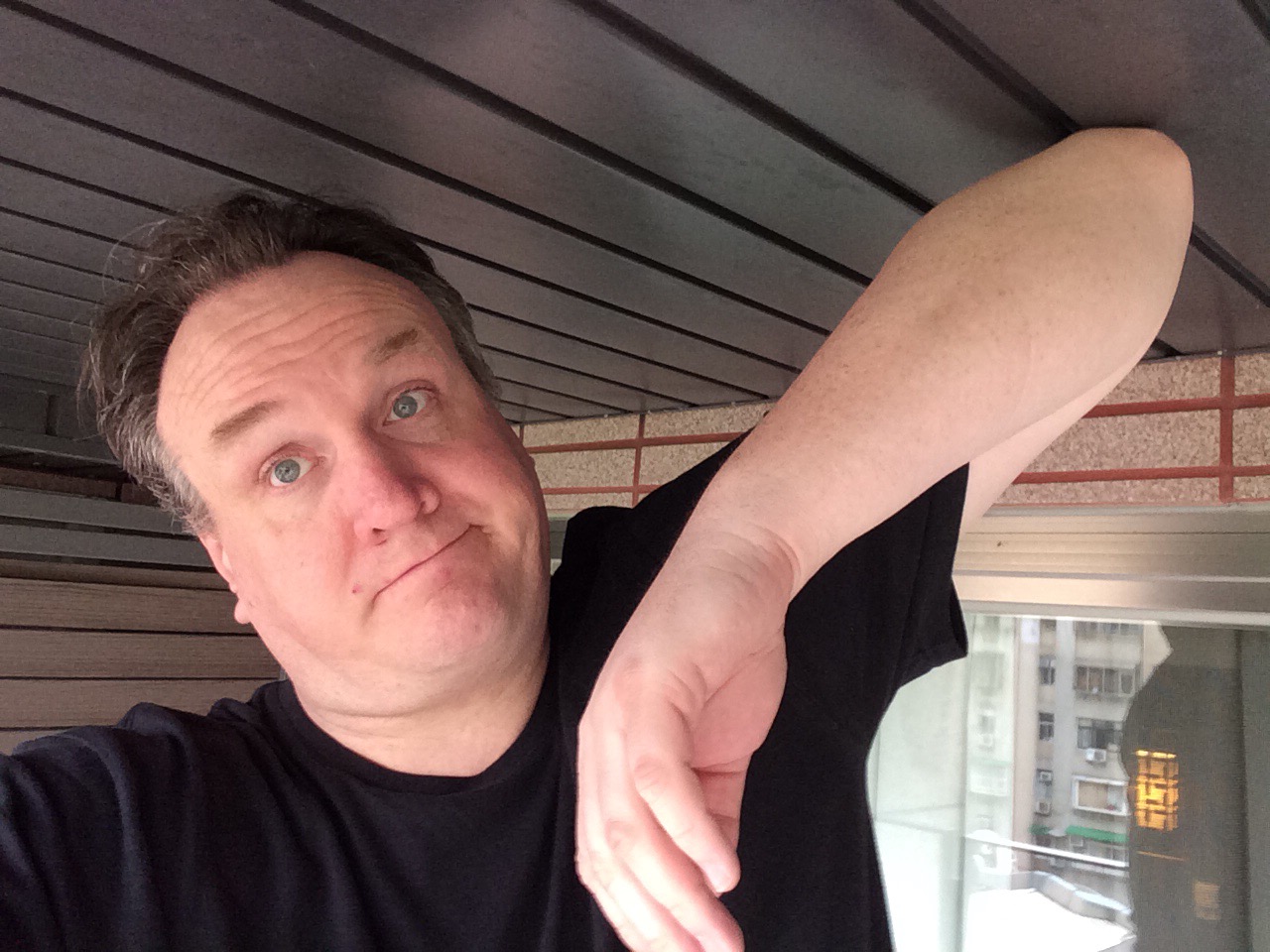 I let the kid at the front desk at the hotel upsell me to a suite with a balcony. Per usual, I used my Can-I-put-my-elbow-on-the-ceiling? test and confirmed that, yes, I was still in Asia.
