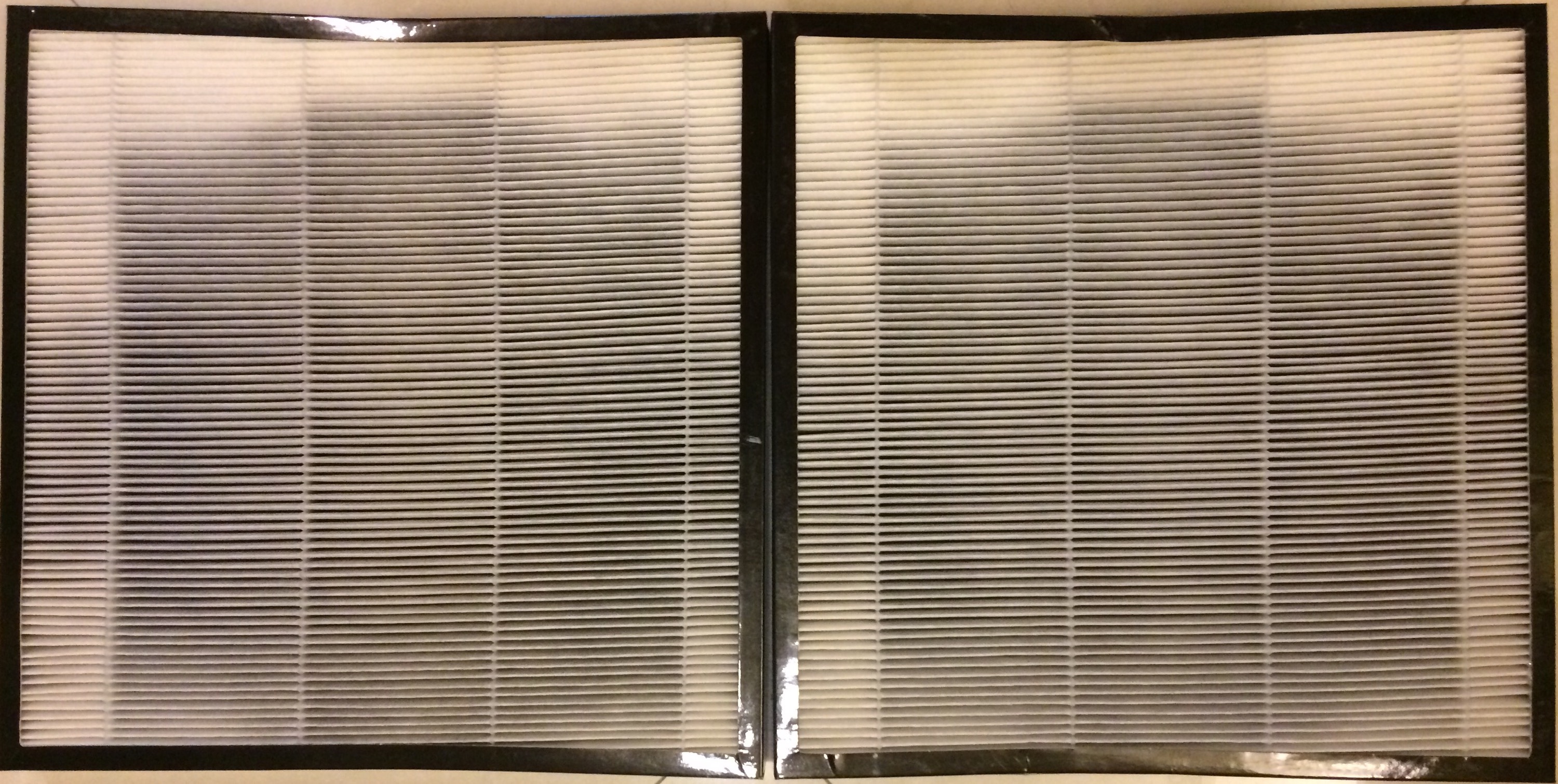 My living room & bedroom air filters — front and back — after 80 days.    Previous air filter check ins here and here.