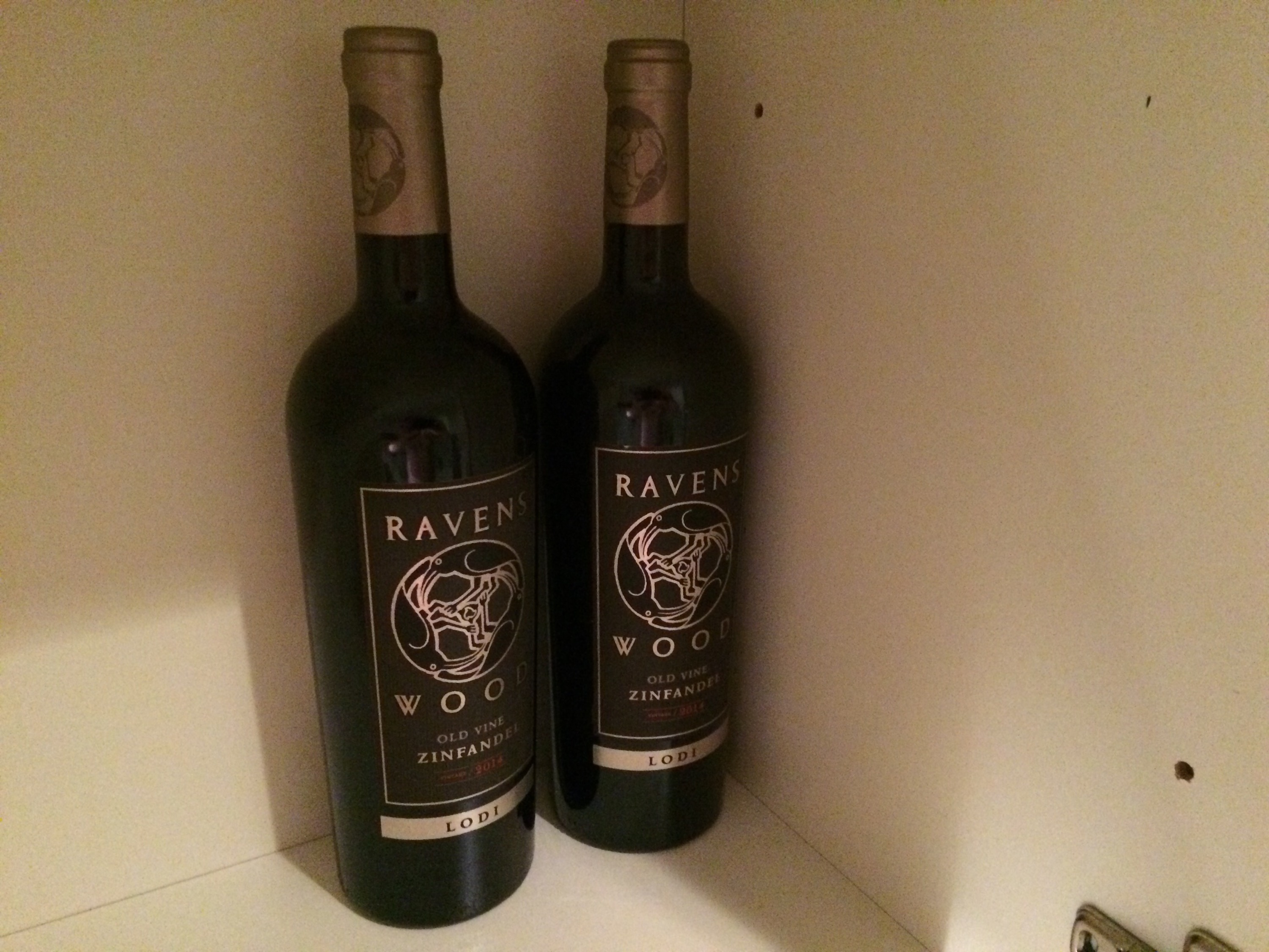A pleasant surprise. I found two bottles of California red Zinfandel lurking in the back of a little used cabinet. Brought them back from L.A. on my trip in March and forgot about them entirely.