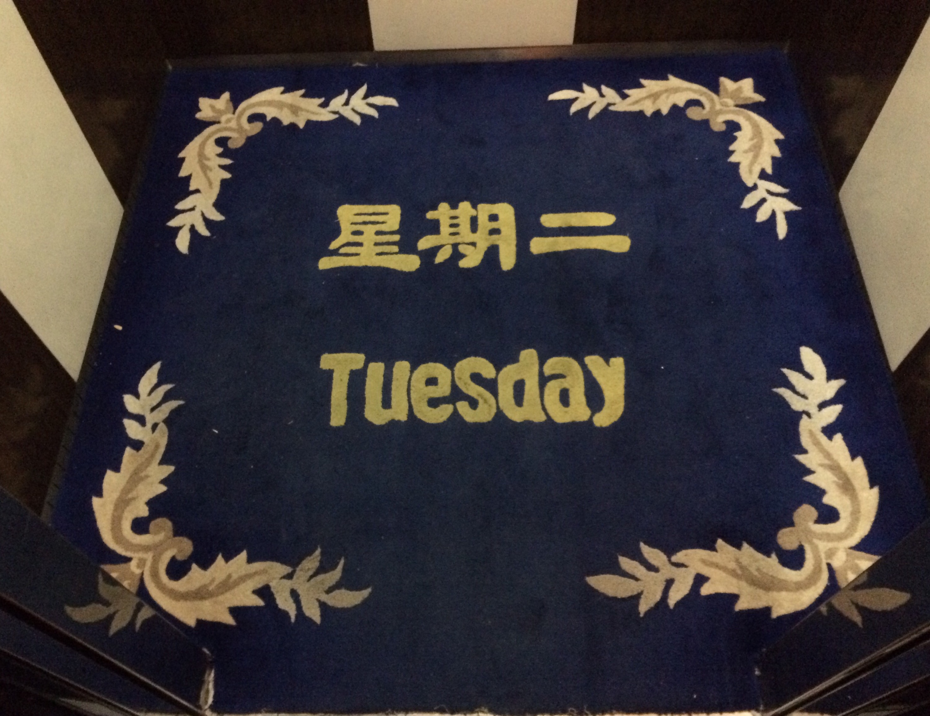 The elevators even had the same day-of-the-week floor mats that Debbie and I saw in the hotel in Datong!