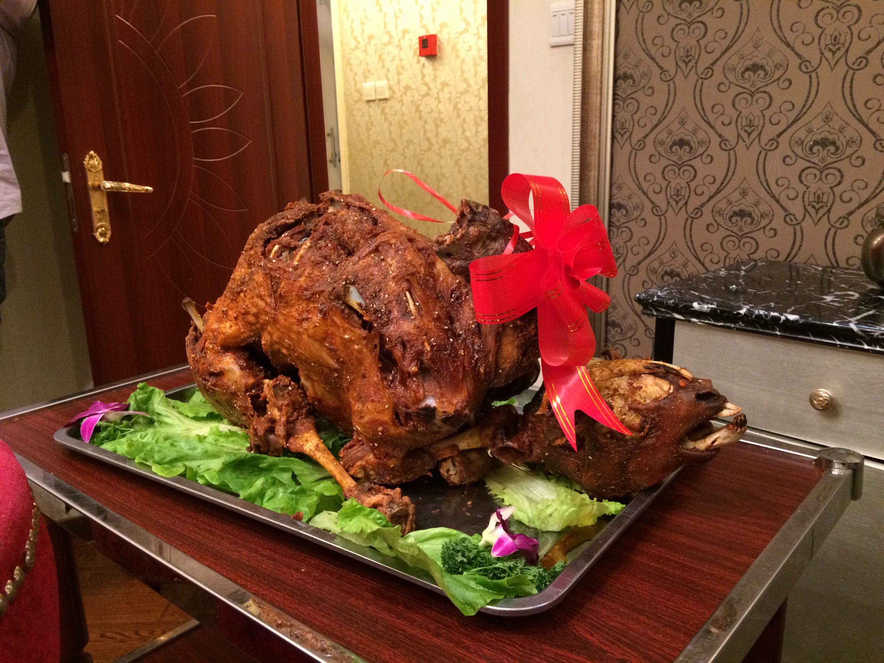 On February 19 it will be the Year of the Sheep. In unrelated news, I was invited by coworkers to dinner to eat an entire sheep. Yeah. An entire sheep. Here it is:IMG_0101.JPGI was told it usually serves twenty people but — with American-level “scraps” — the eight of us seemed to finish it.