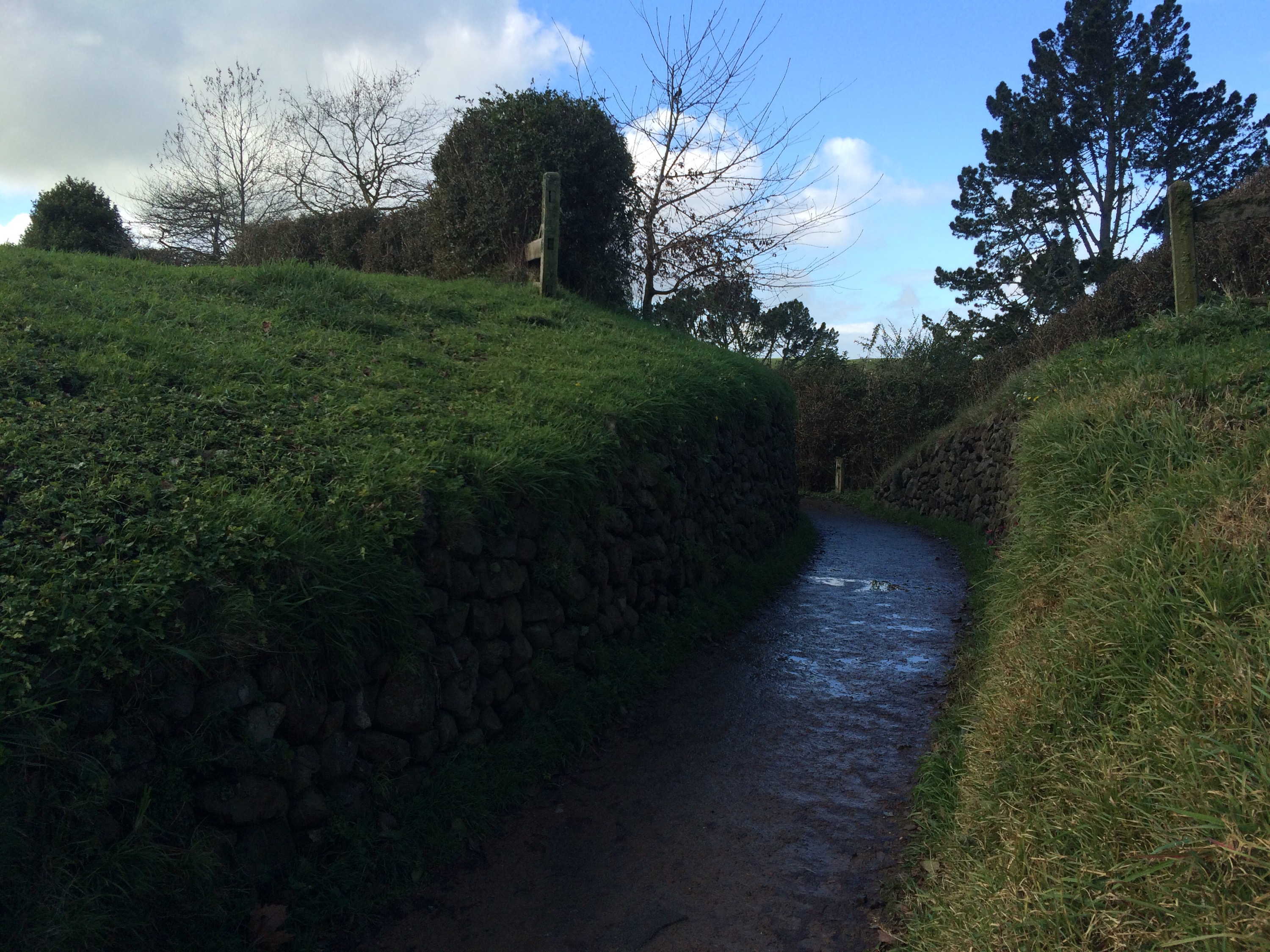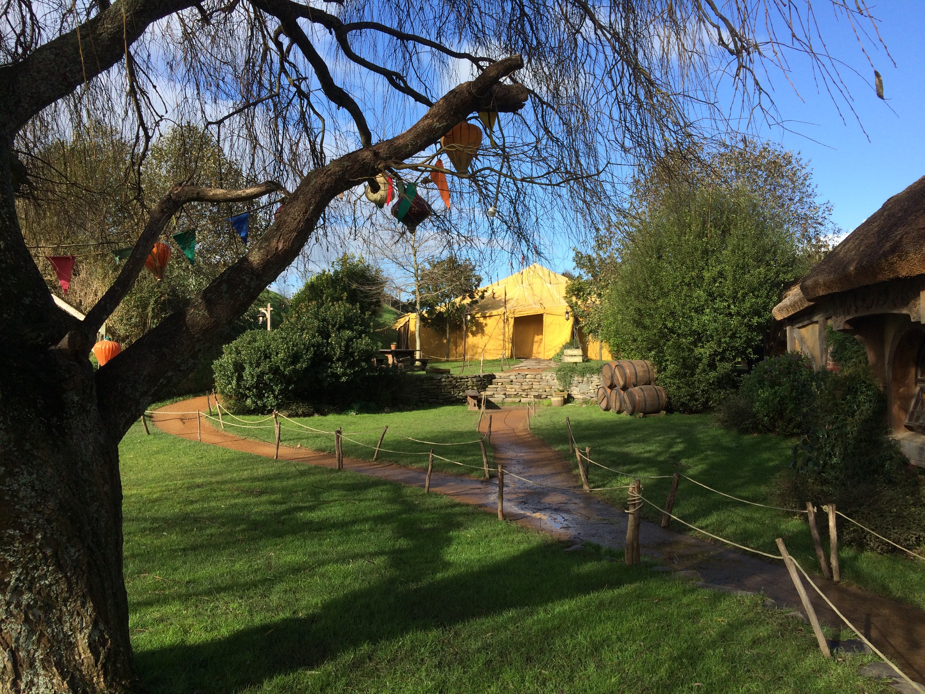 From the shuttle bus, we entered Hobbiton through the same narrow channel that Gandalf and Frodo rode through.