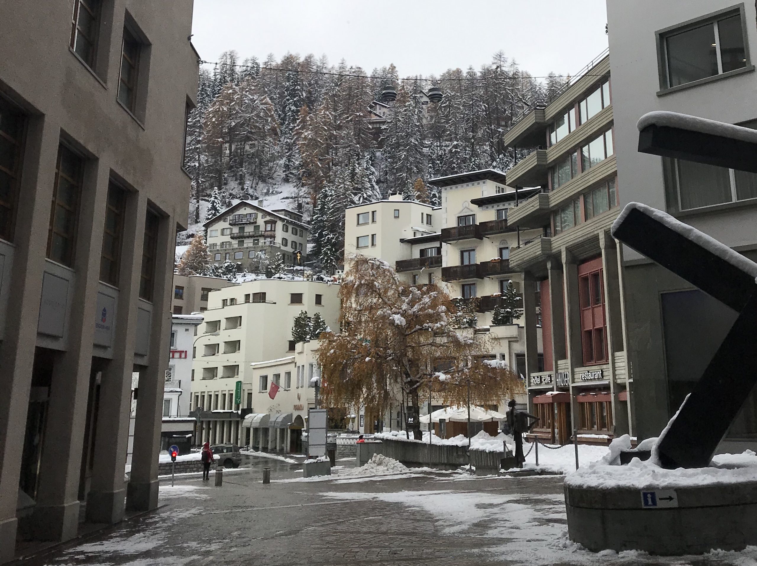 The resort town of St. Moritz, still sleepy before the start of the skiing season.