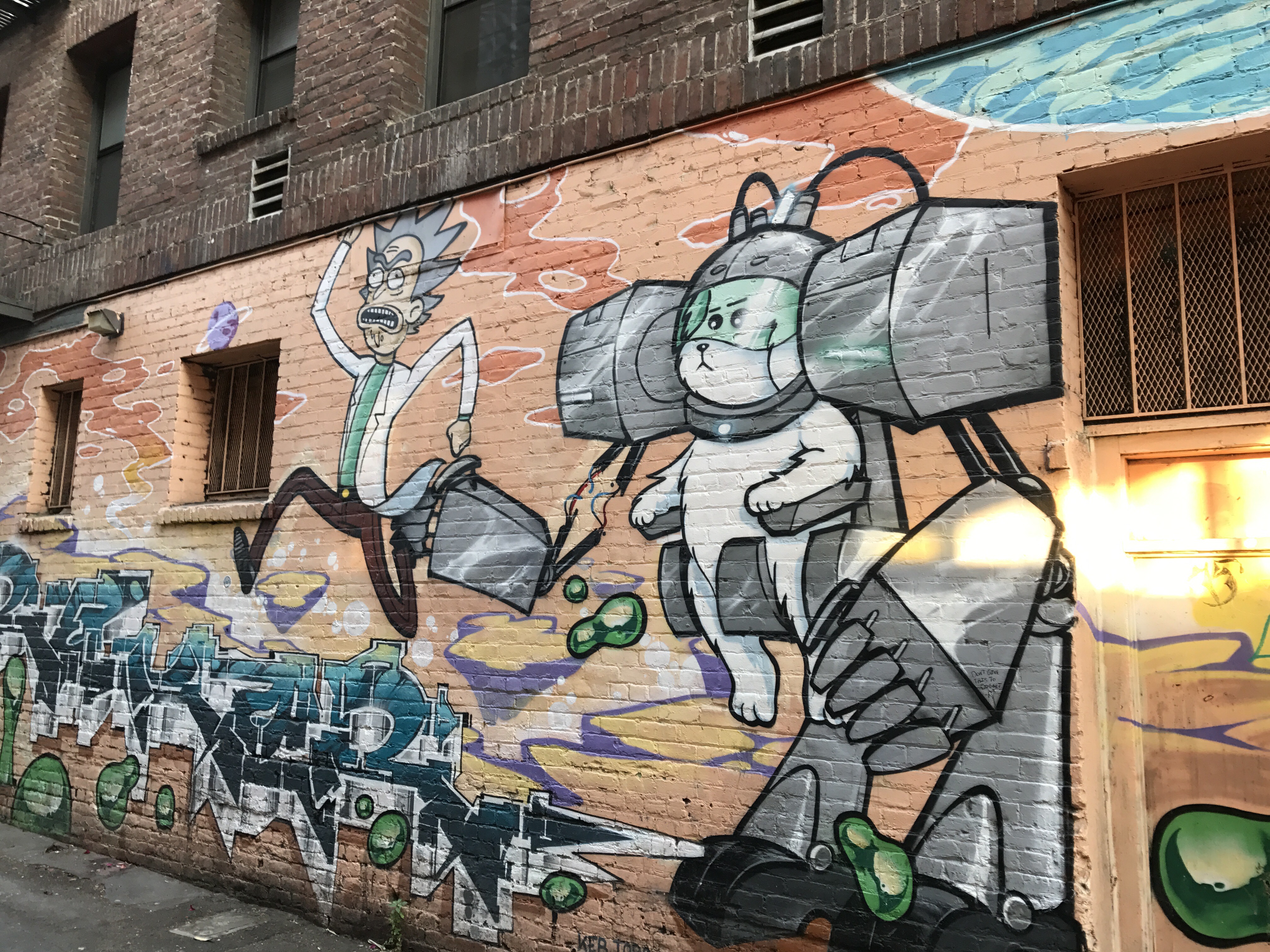 Spotted this Rick & Morty mural off 3rd St. in San Francisco. “You shall now call me Snowball, because my fur is pretty and white.”
