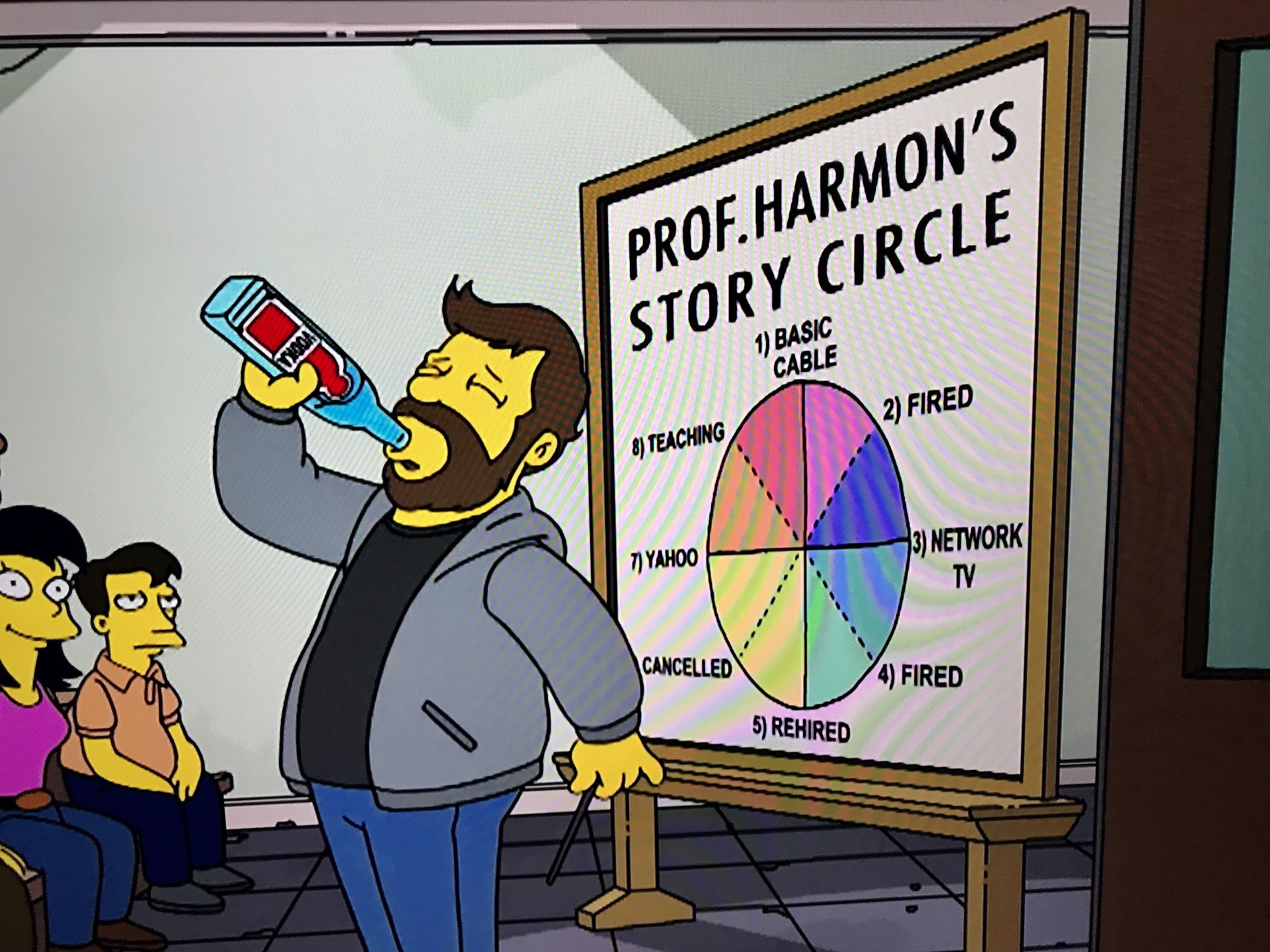Dan Harmon had an amusing cameo on The Simpsons teaching at a community college.