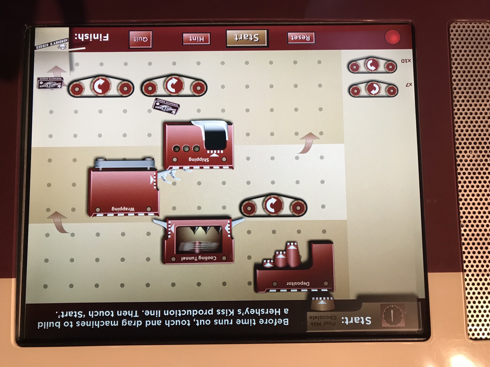 I spent an embarrassing amount of time at this factory simulation getting all my components in the right order and position to successful create Hershey’s Kisses.