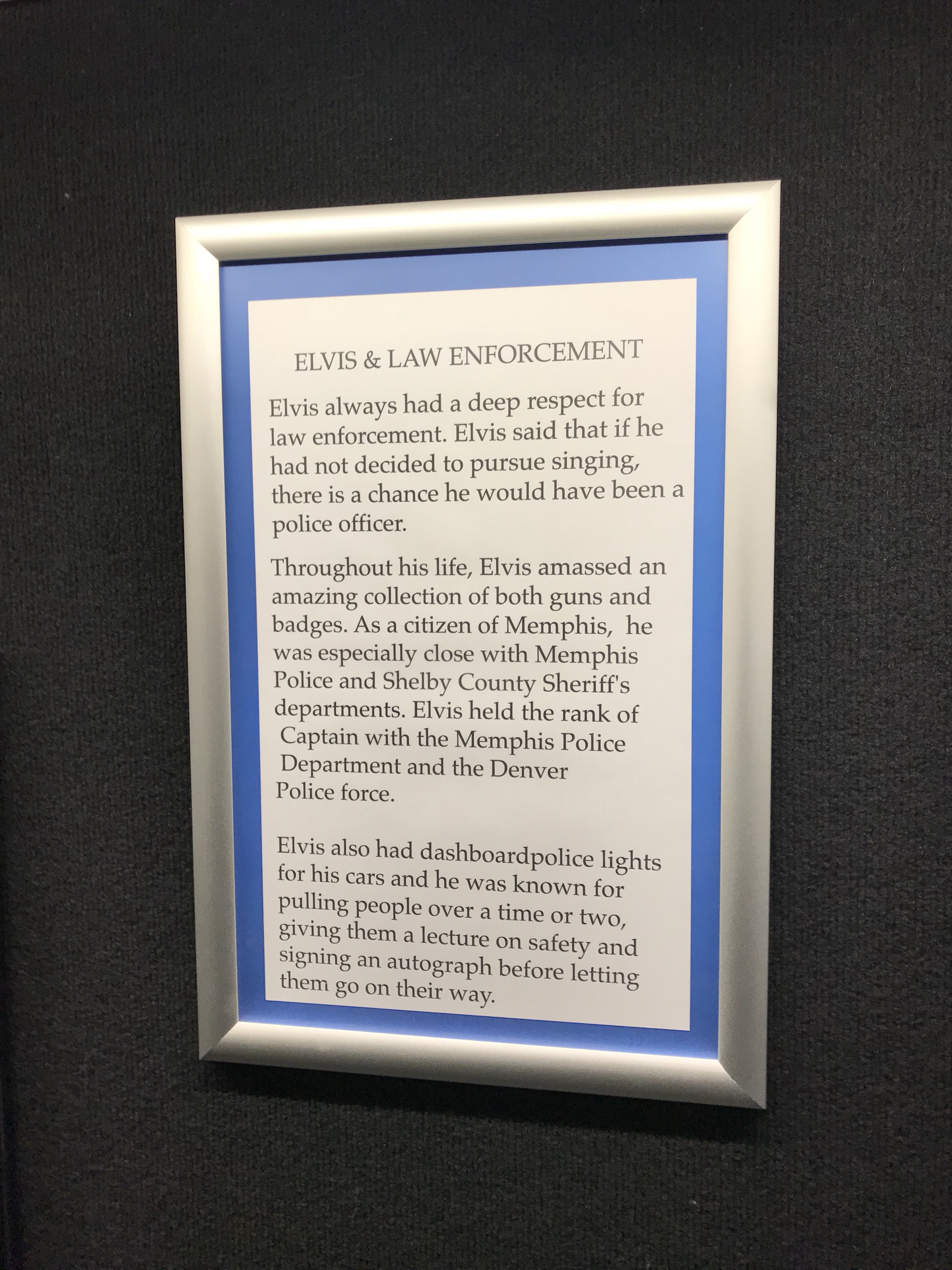 They had on display Elvis’s infamous Bureau of Narcotics and Dangerous Drugs badge that he finagled from President Nixon!