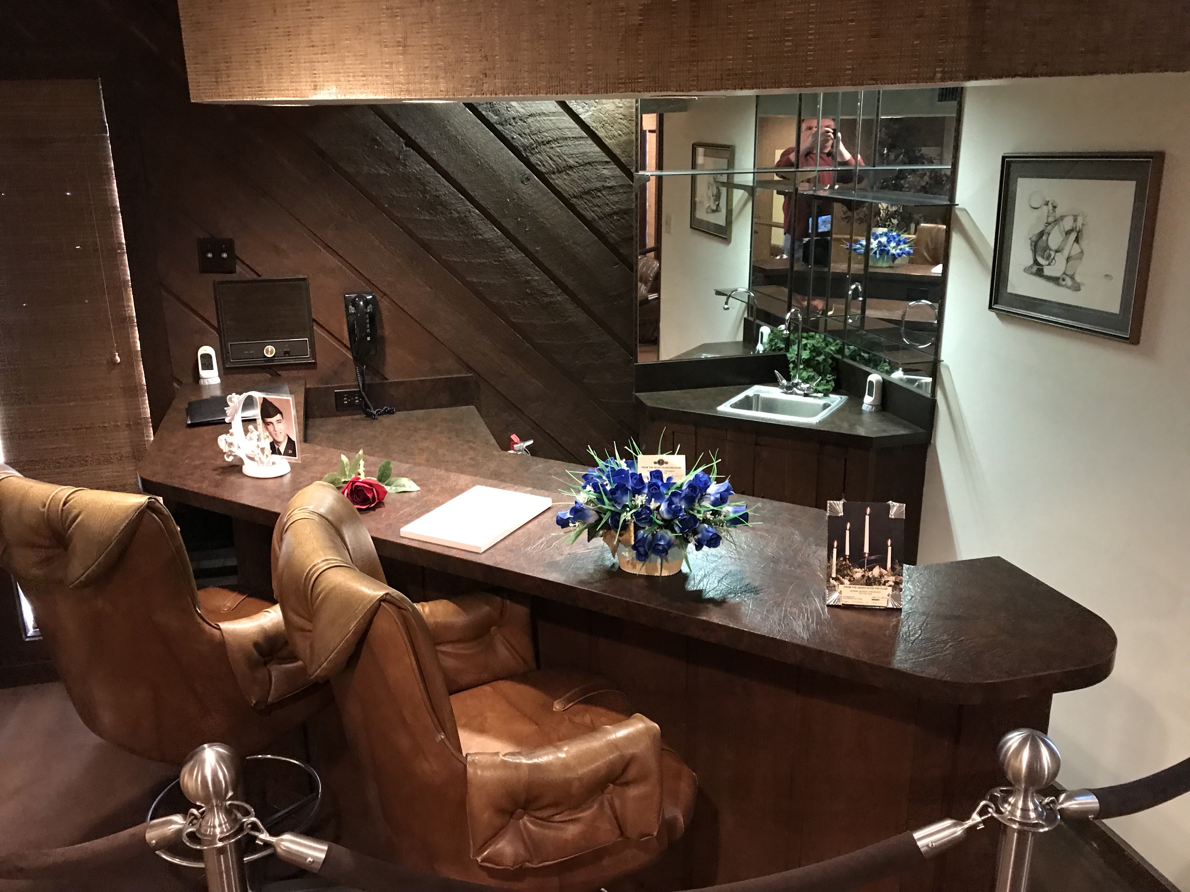 In the backyard, in the office where Elvis’s father Vernon conducted business, we transition from kitsch to banality.