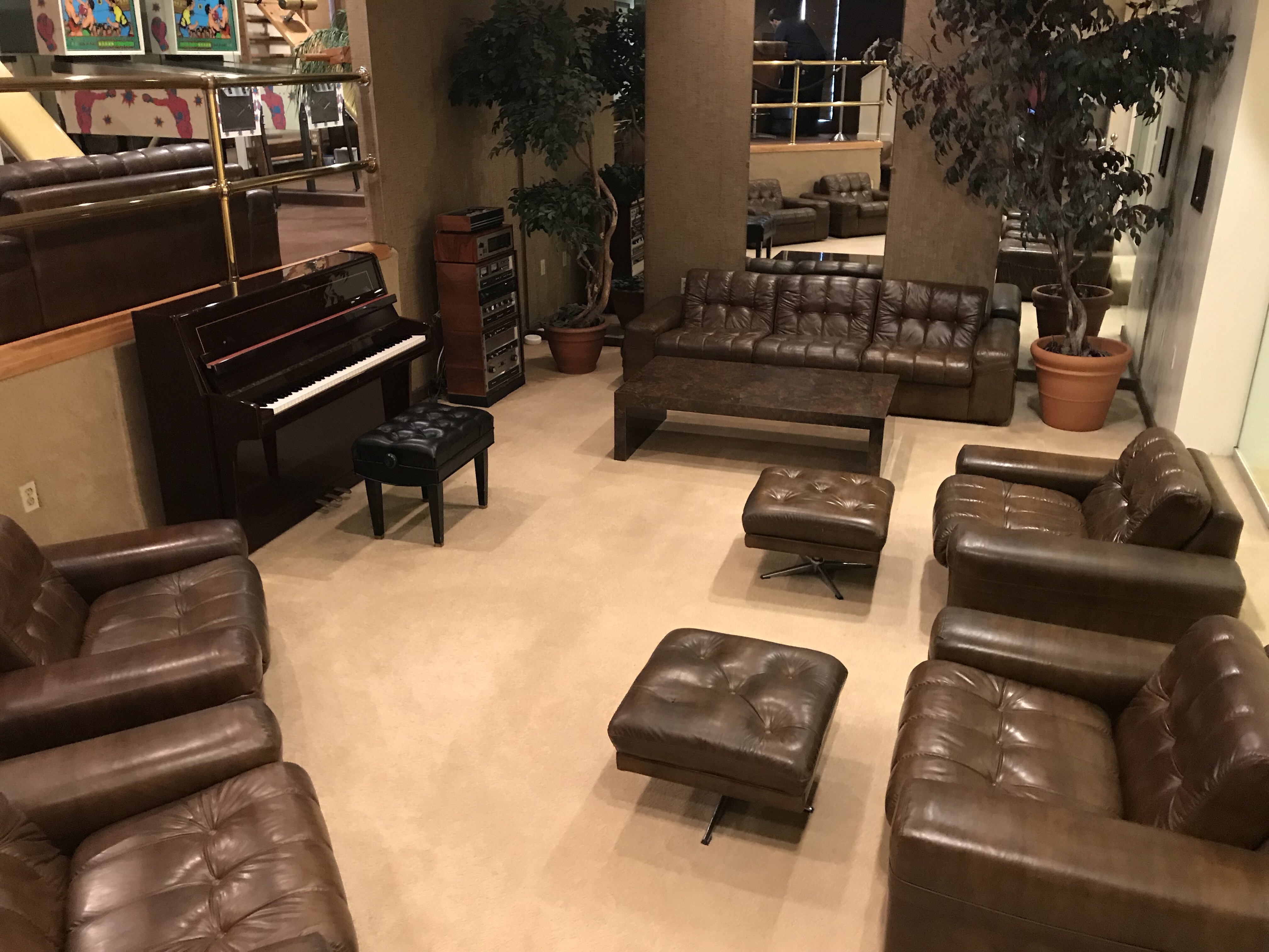 …whereas the three televisions in the basement cocktail lounge made me think of Ozymandias‘s bank of monitors in Watchmen.