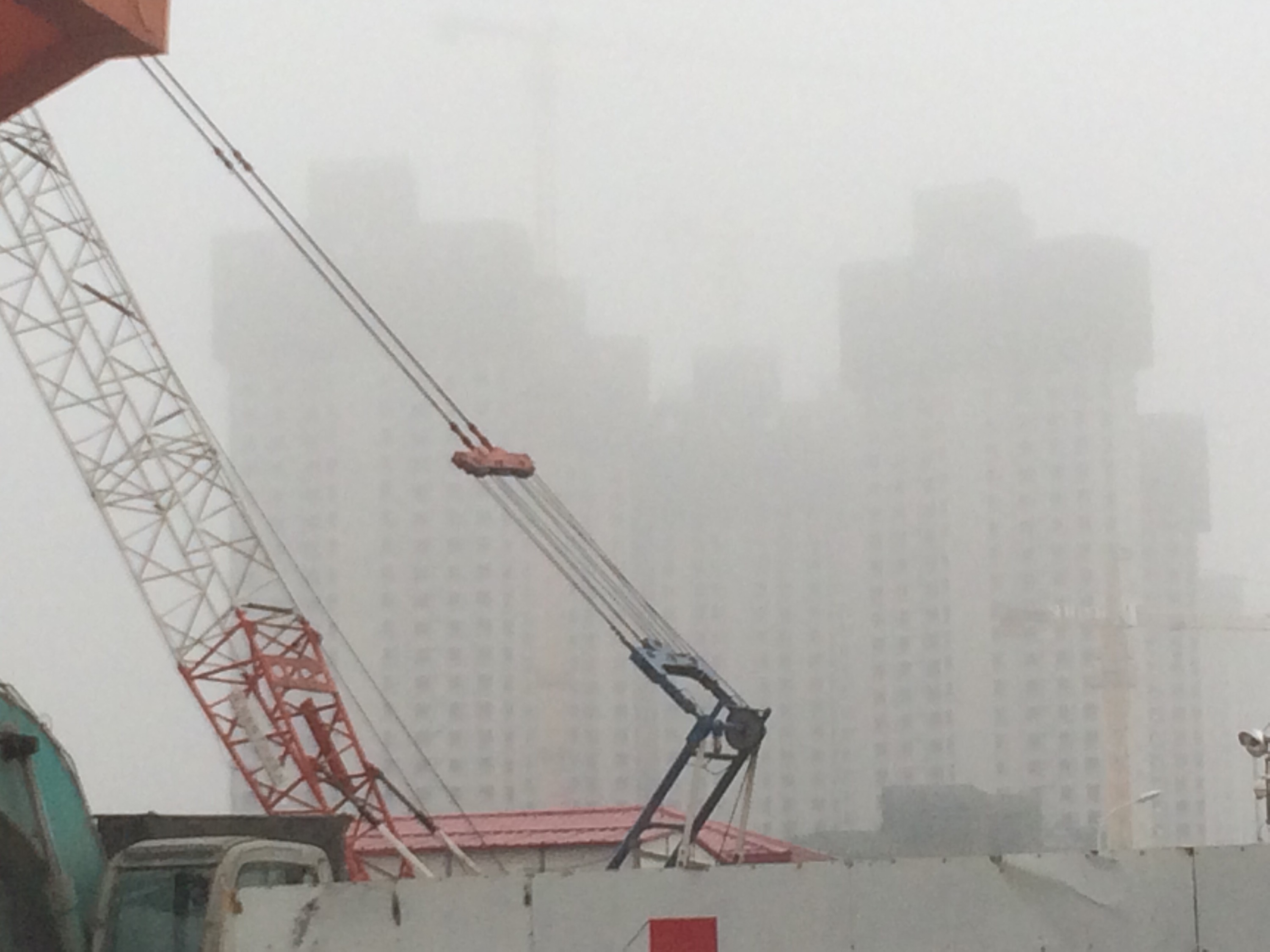 Visited the eastern terminus of the new Line 12. Found construction sites rising into the mist.