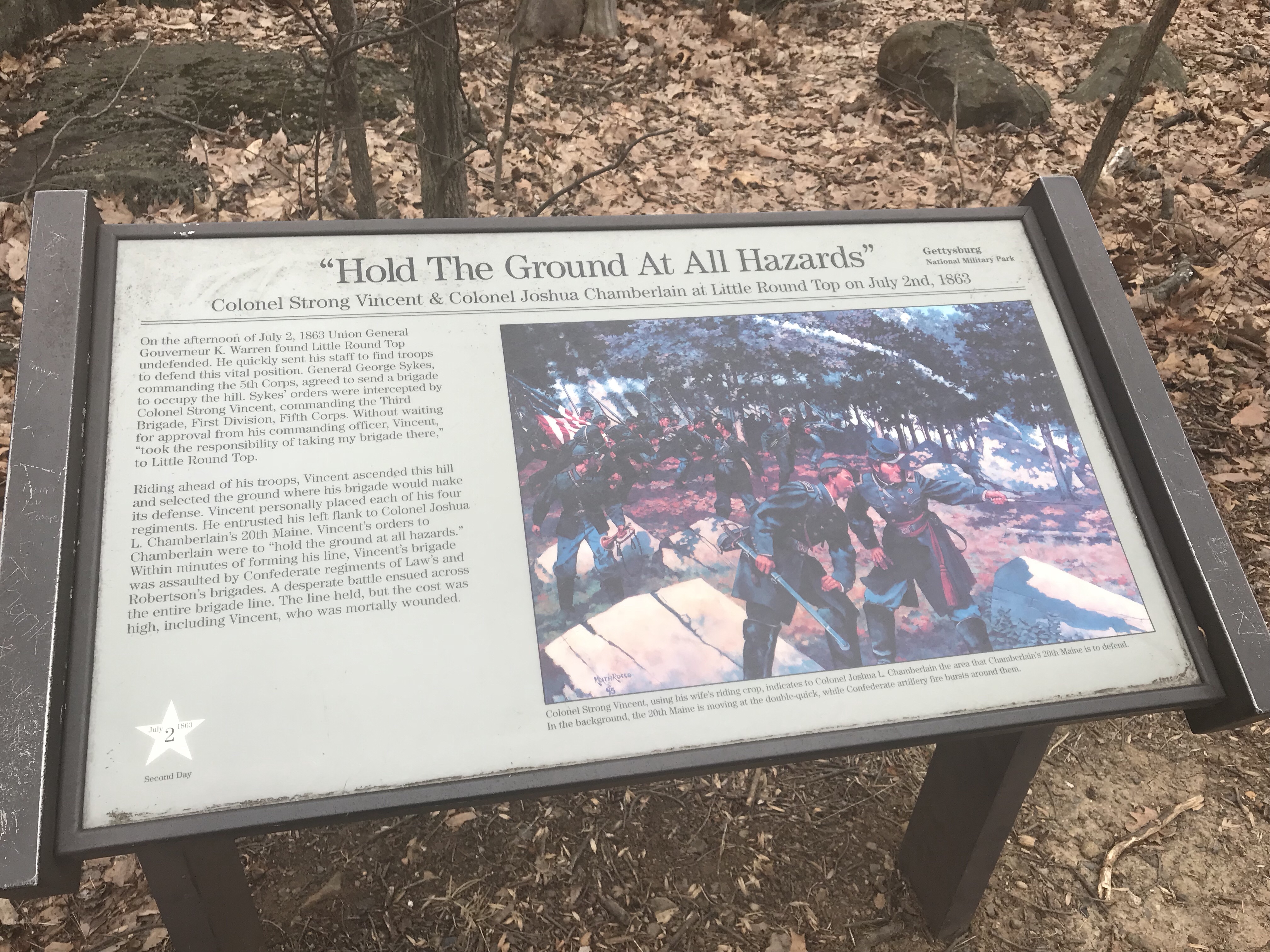 The Union suddenly realized that the southernmost tip of their fish hook defense was undefended and could easily be rolled up by the Confederates and crush the whole defensive line. My man Joshua Chamberlain was told to “Hold the ground at all hazards.”