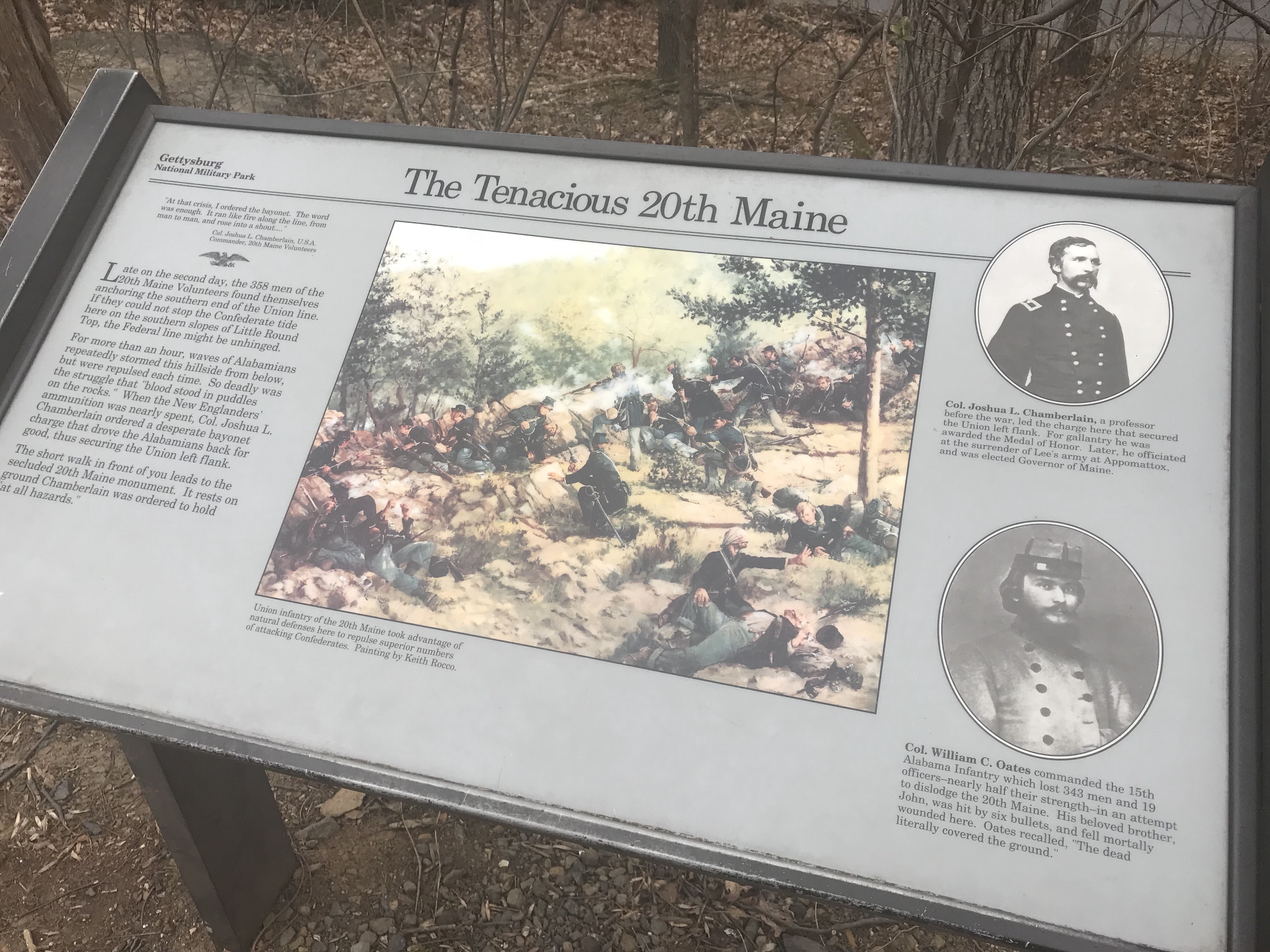 The Union suddenly realized that the southernmost tip of their fish hook defense was undefended and could easily be rolled up by the Confederates and crush the whole defensive line. My man Joshua Chamberlain was told to “Hold the ground at all hazards.”
