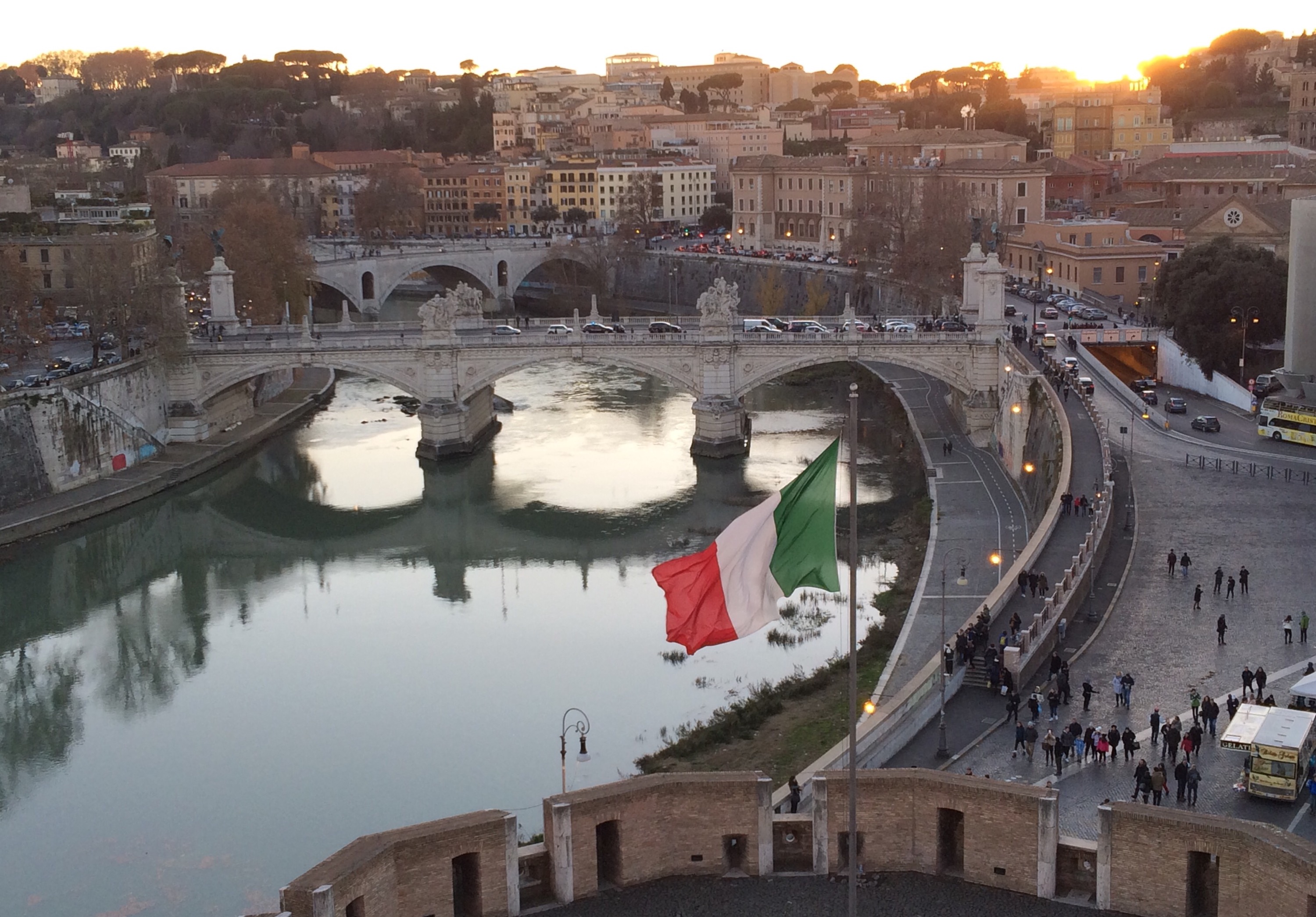 Sunset over Rome as seen from high atop the Castel Sant’Angelo.