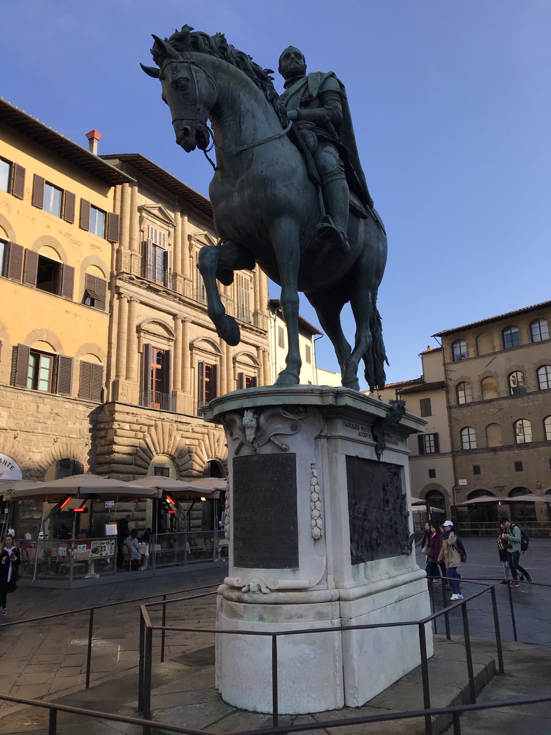 This Roman-style Equestrian Monument of Cosimo I was commissioned by Cosimo’s son, Ferdinando I.