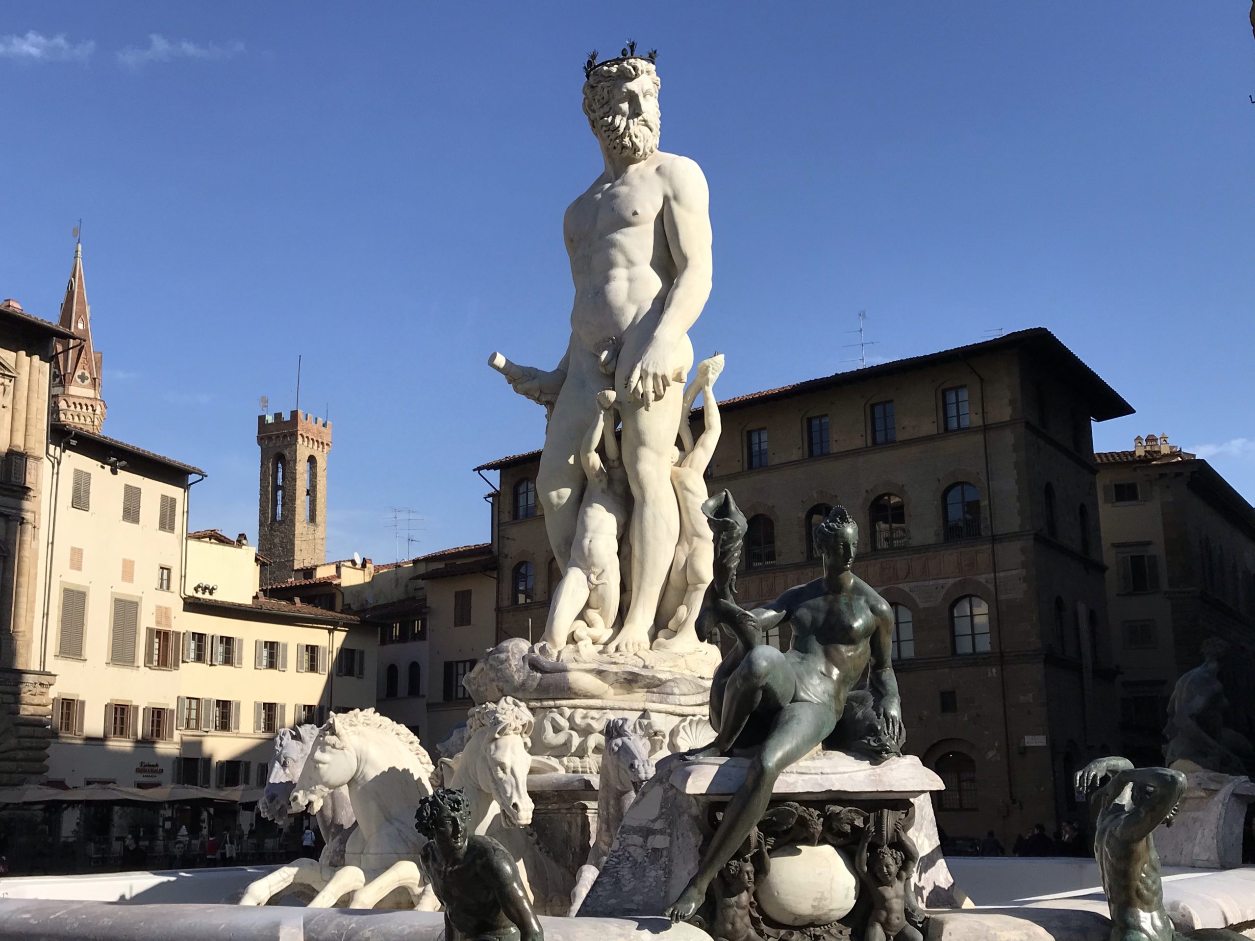 In 1565, the Fountain of Neptune was commissioned by Cosimo I de’ Medici (from a different branch of the Medicis.) Neptune’s face is supposedly modeled on the Duke’s.