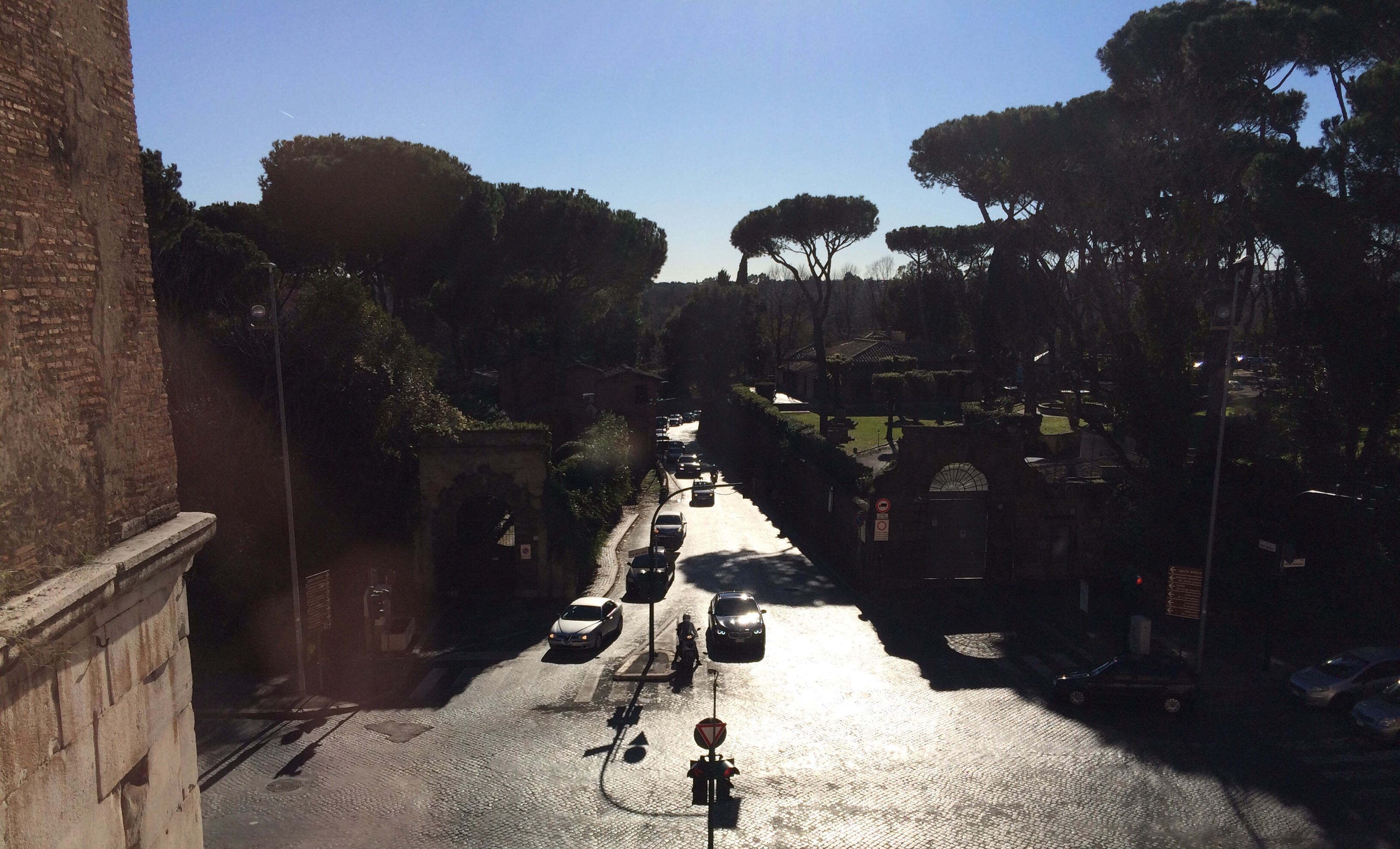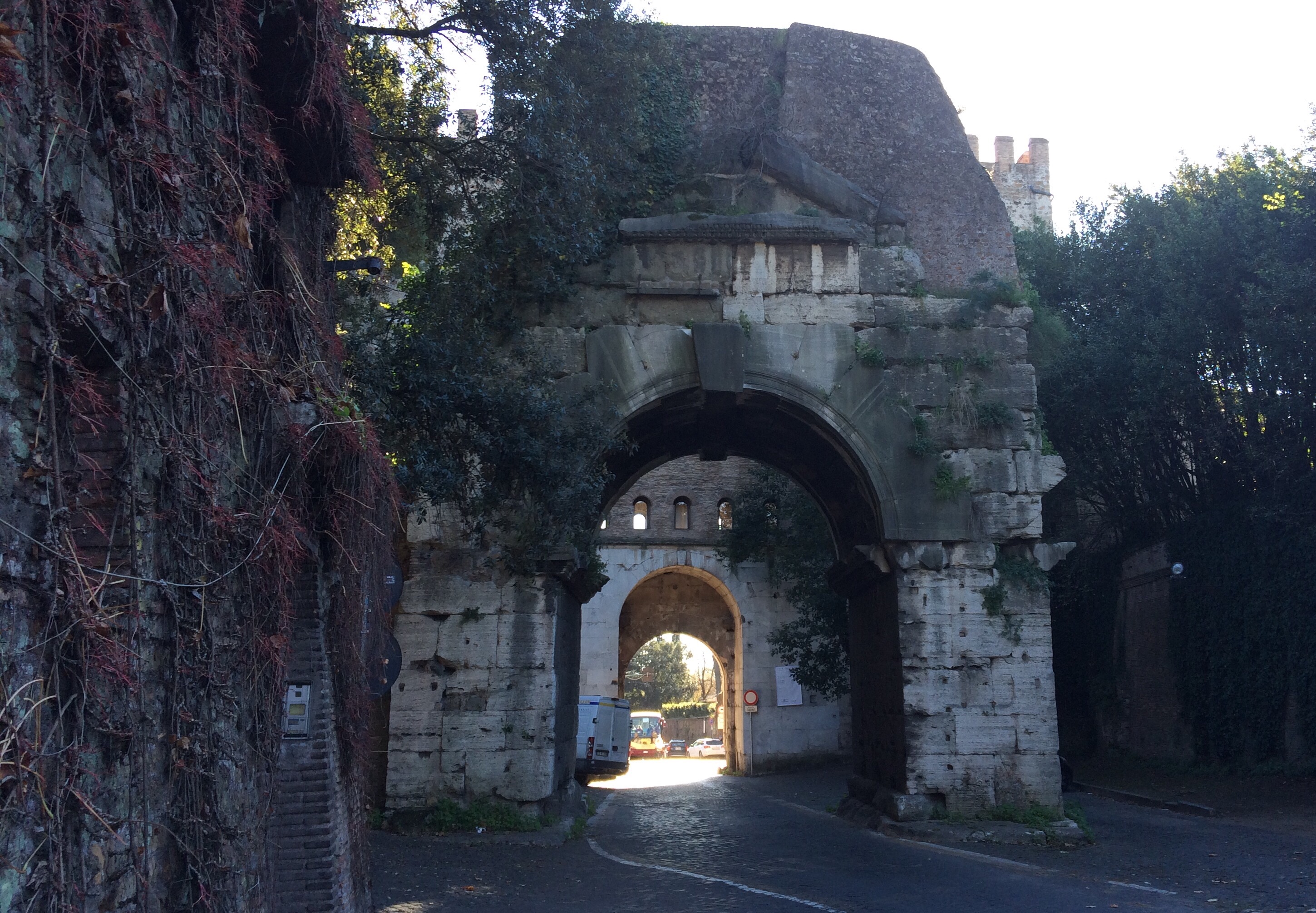 The Via Appia, looking from Rome out through the Porta Appia to the wide world beyond.