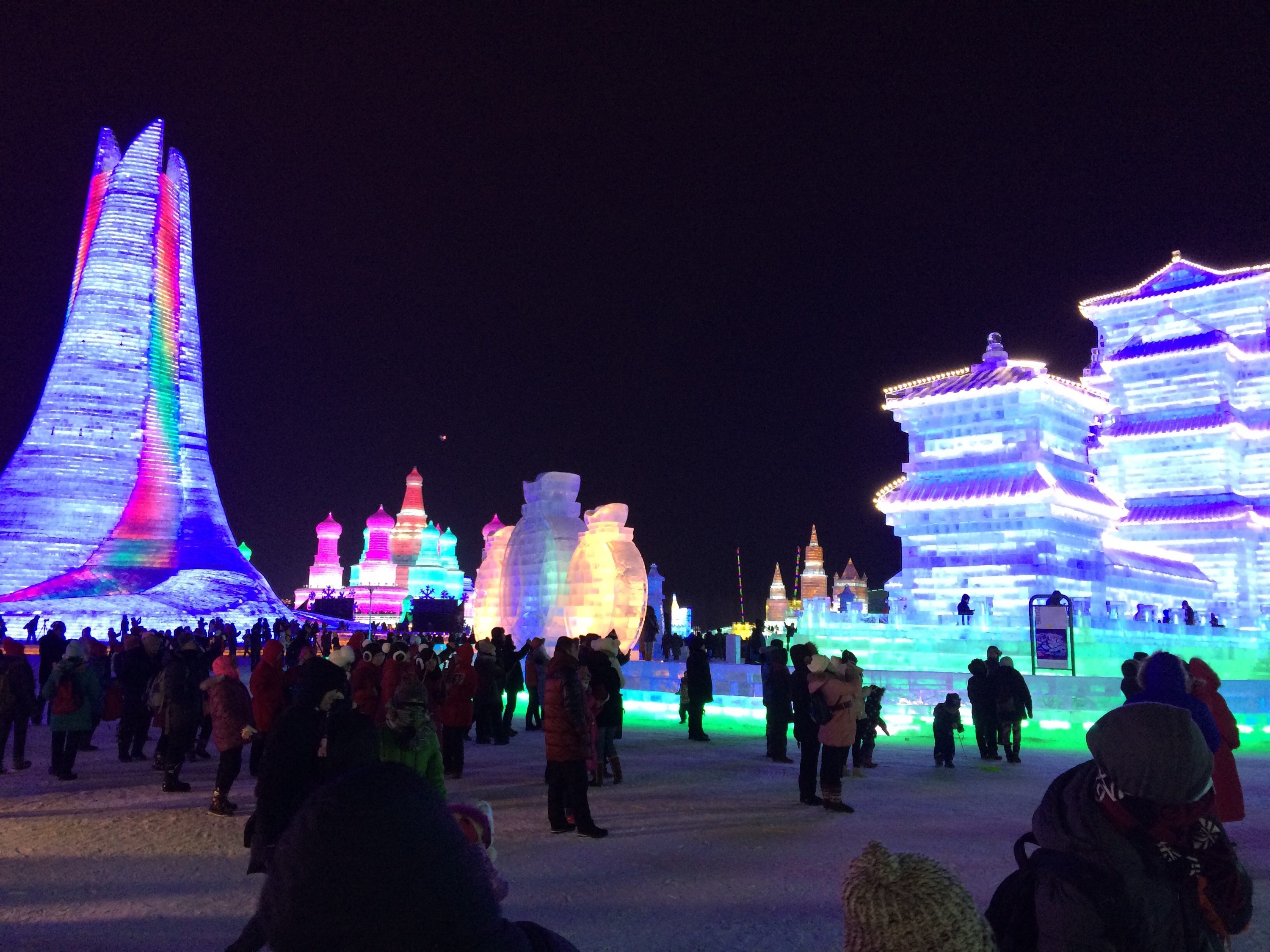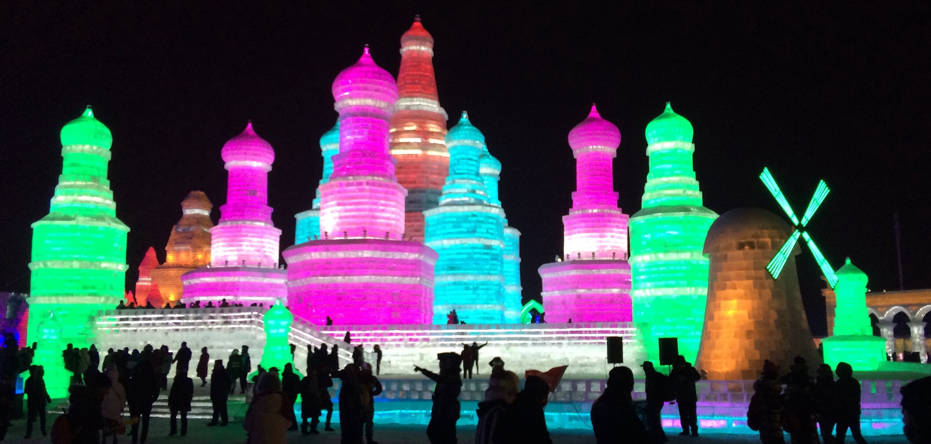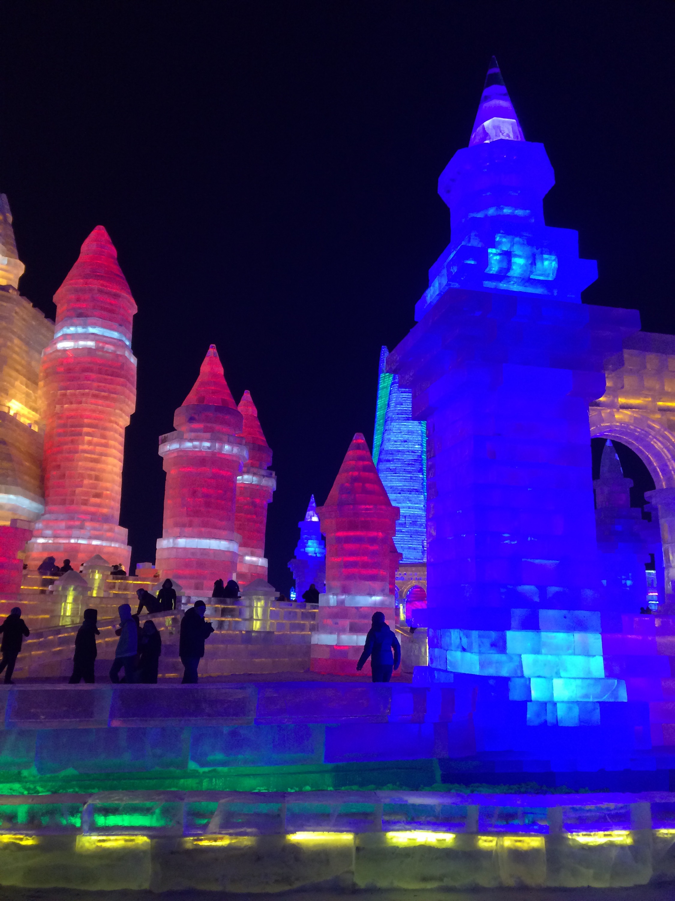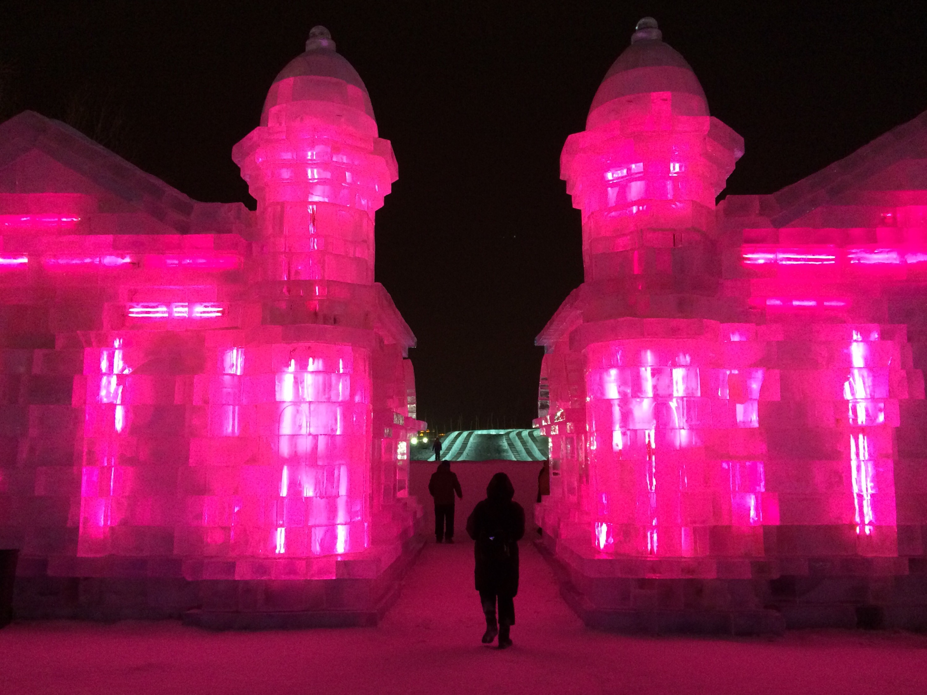So, this is the deal.  Every year, they hue blocks of ice from the Songhua River, stack them into amazing structures, and light them up.