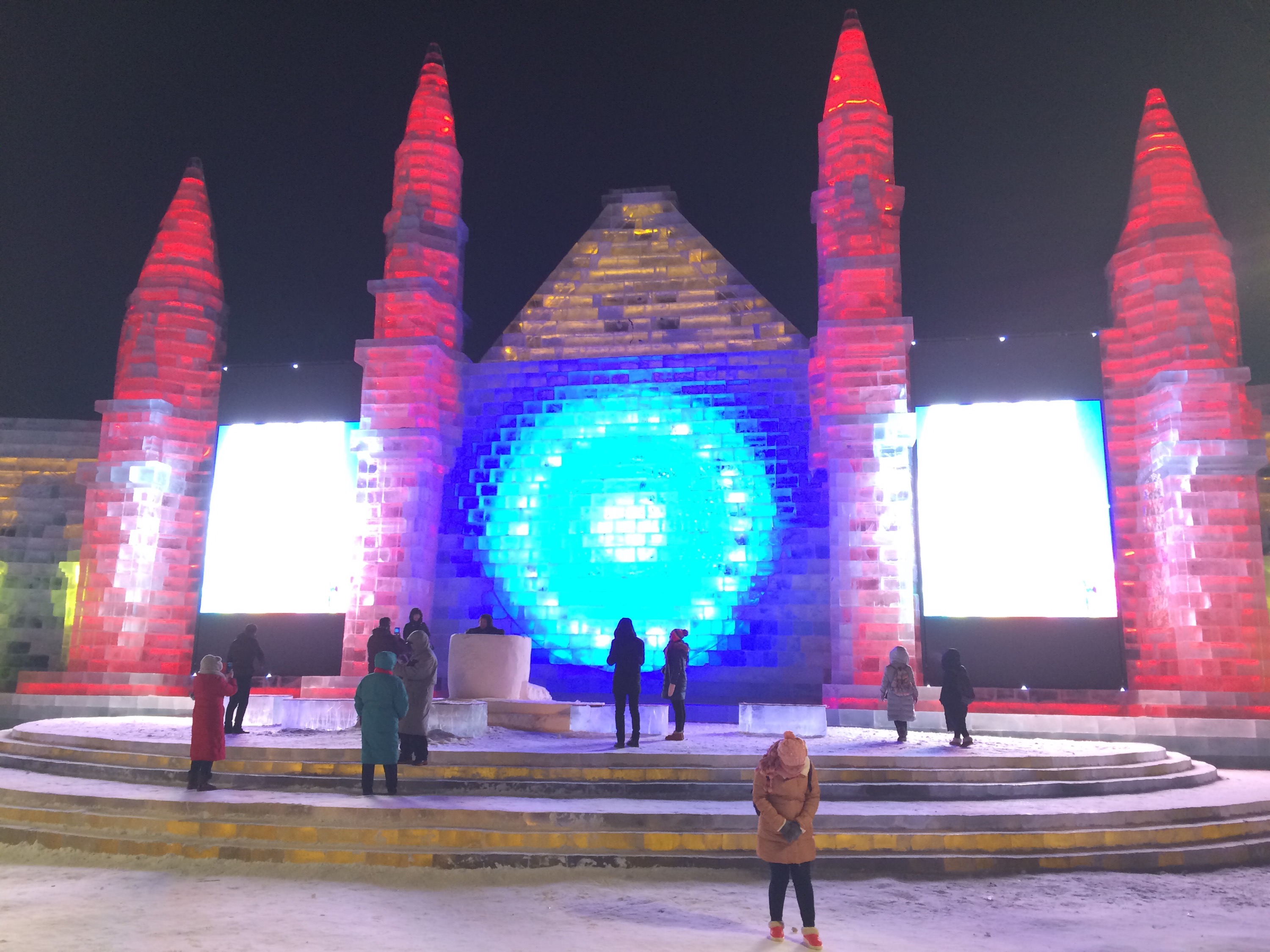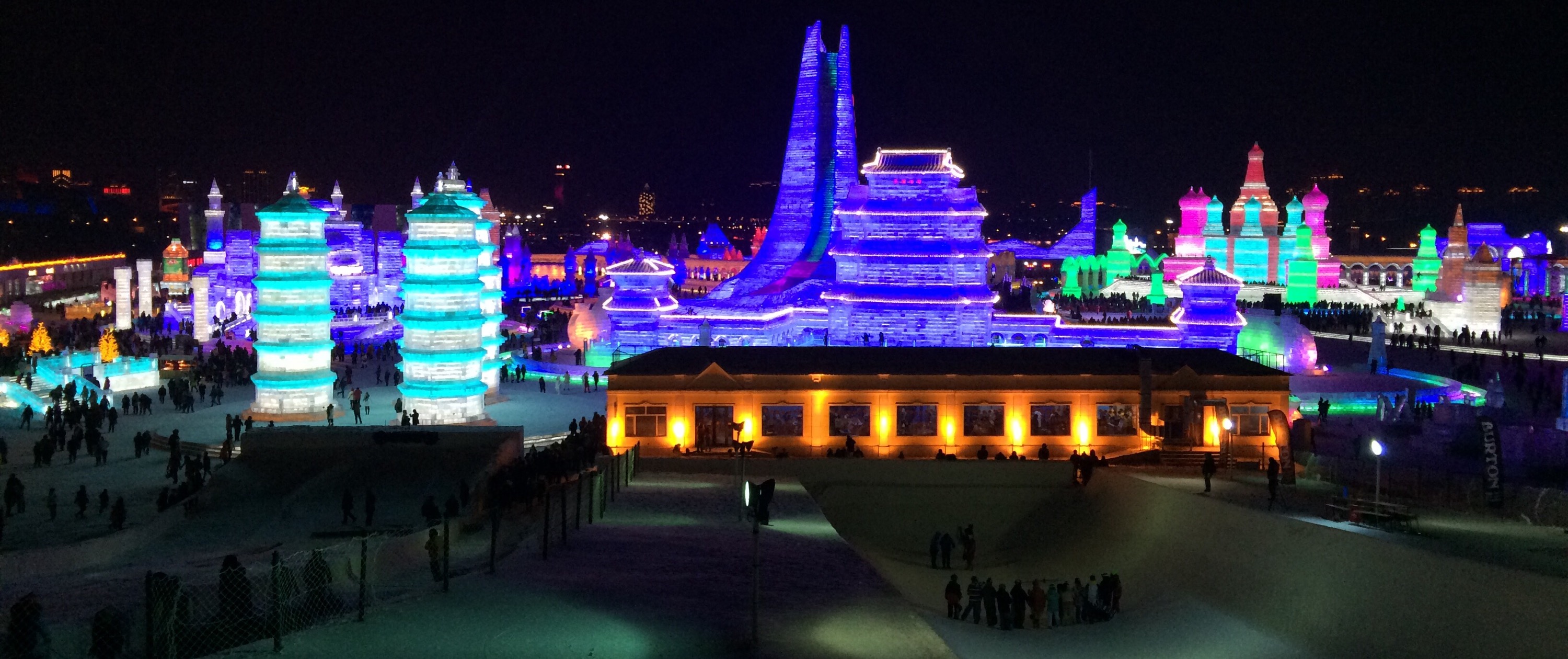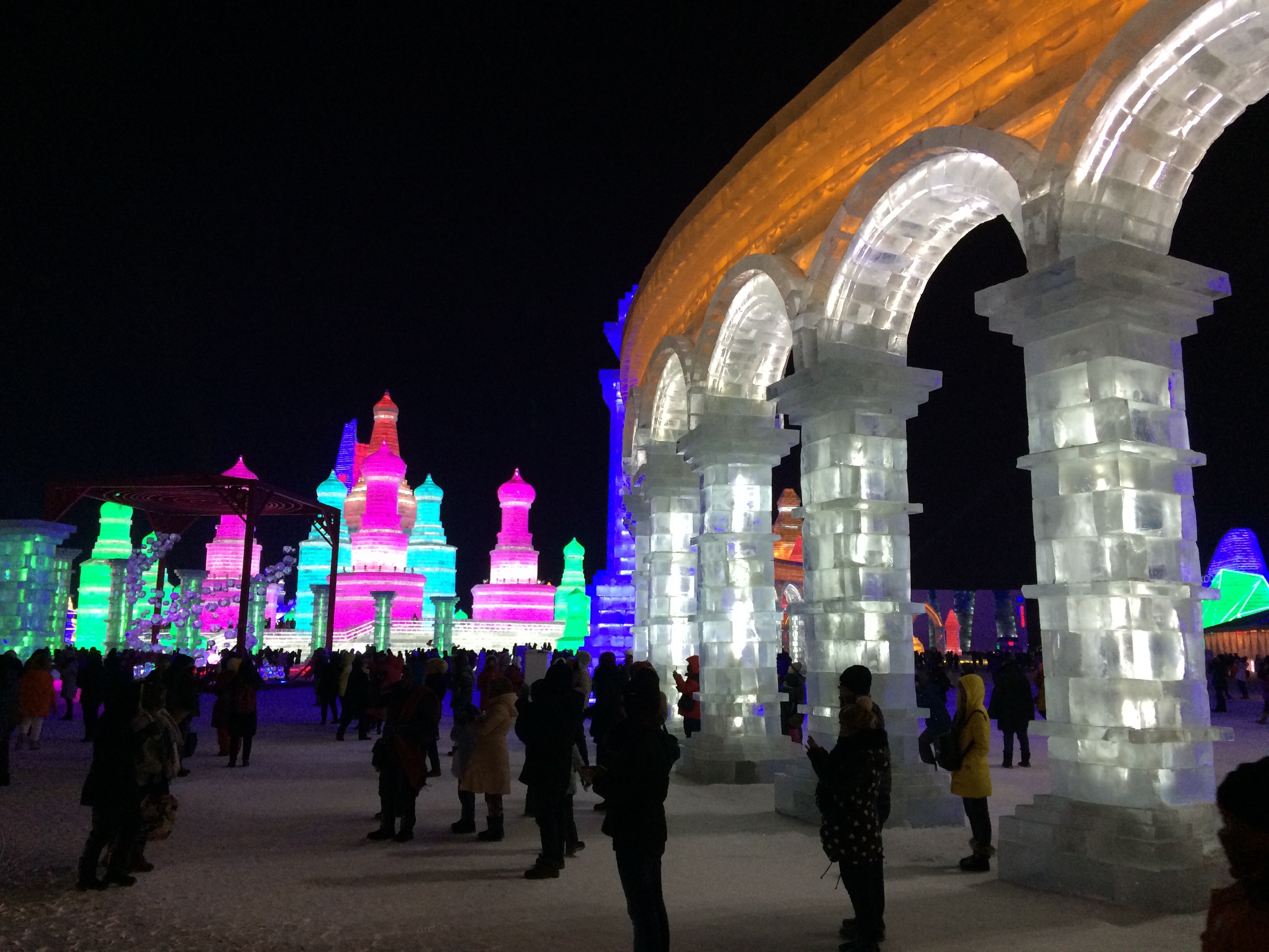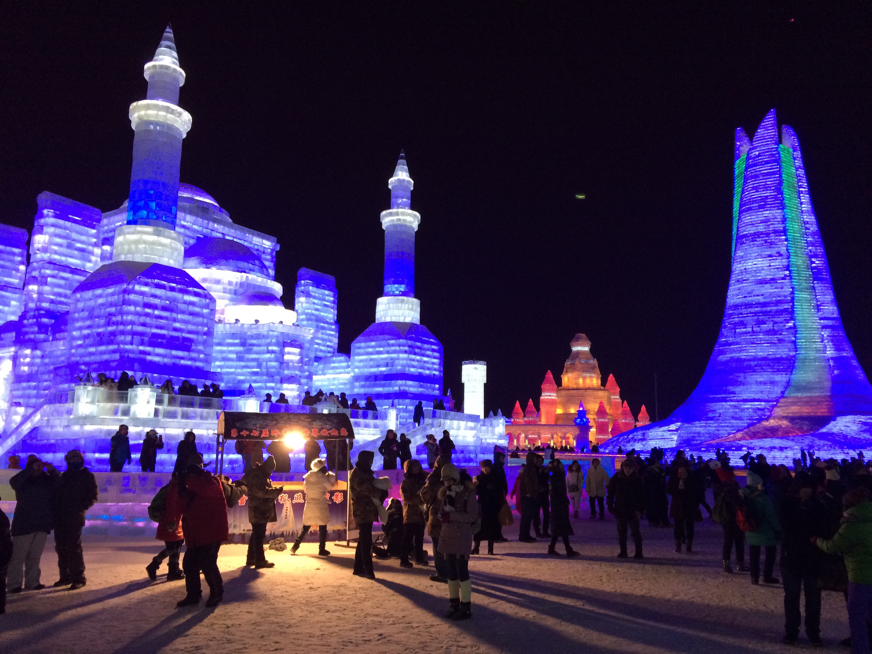 So, this is the deal.  Every year, they hue blocks of ice from the Songhua River, stack them into amazing structures, and light them up.