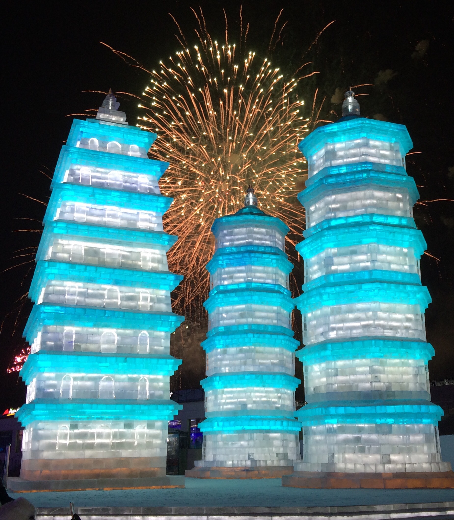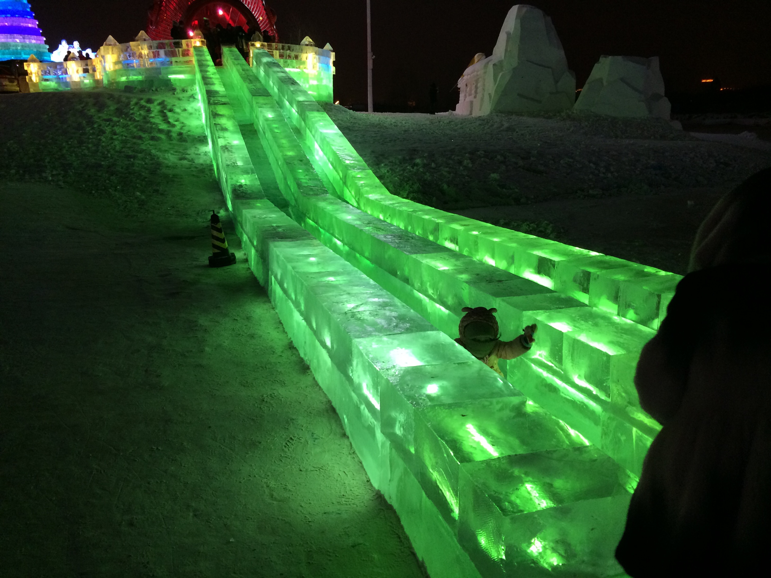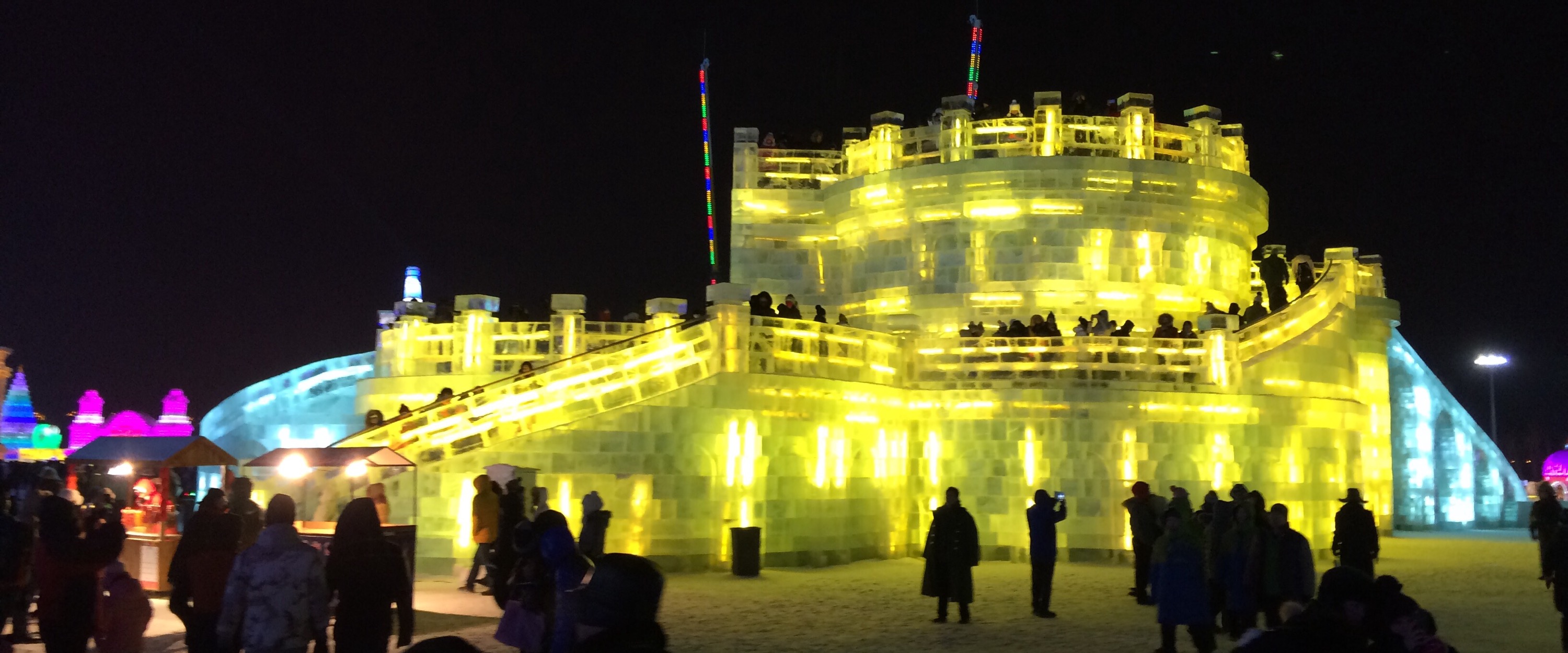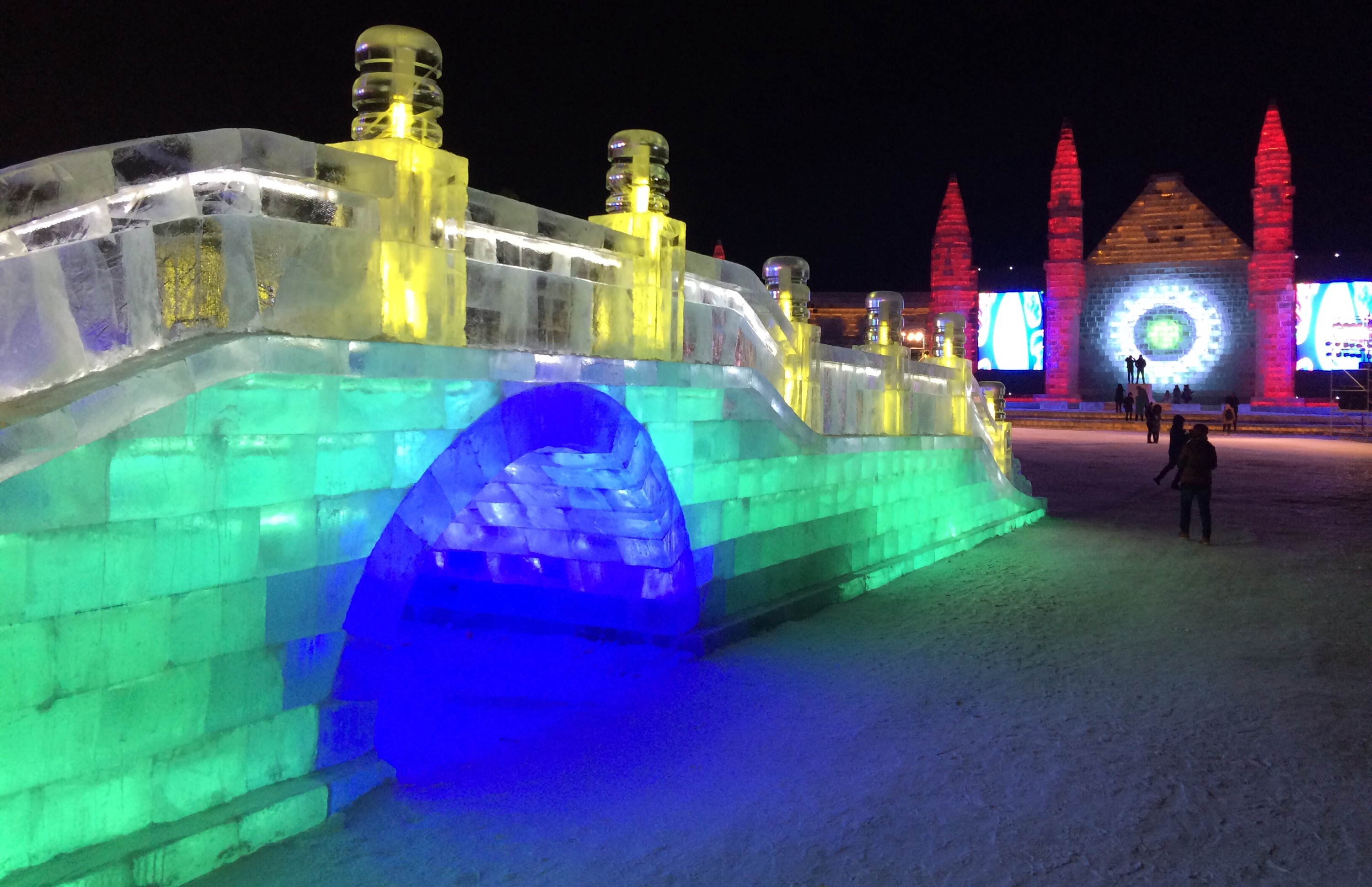 So, this is the deal.  Every year, they hue blocks of ice from the Songhua River, stack them into amazing structures, and light them up.