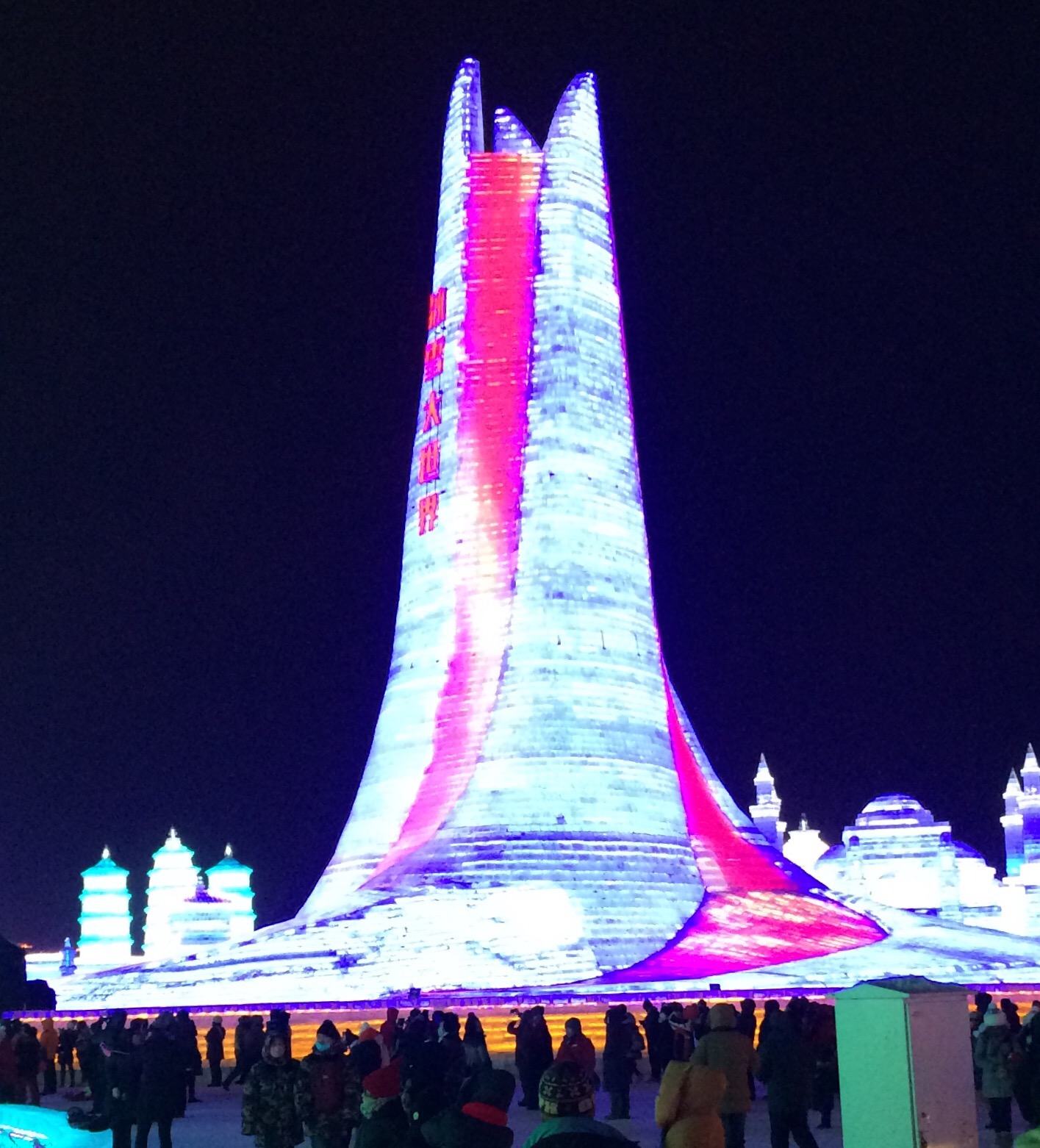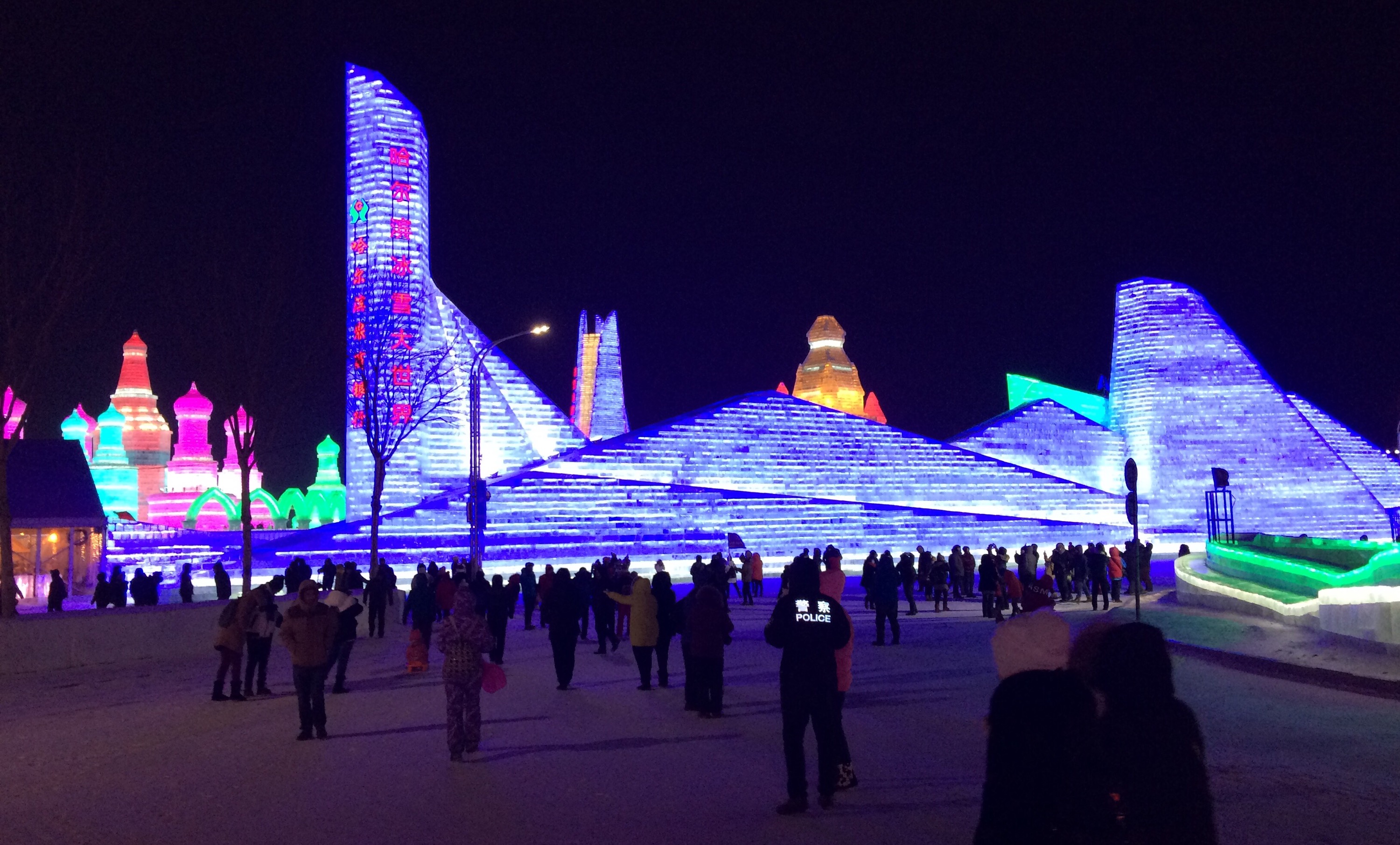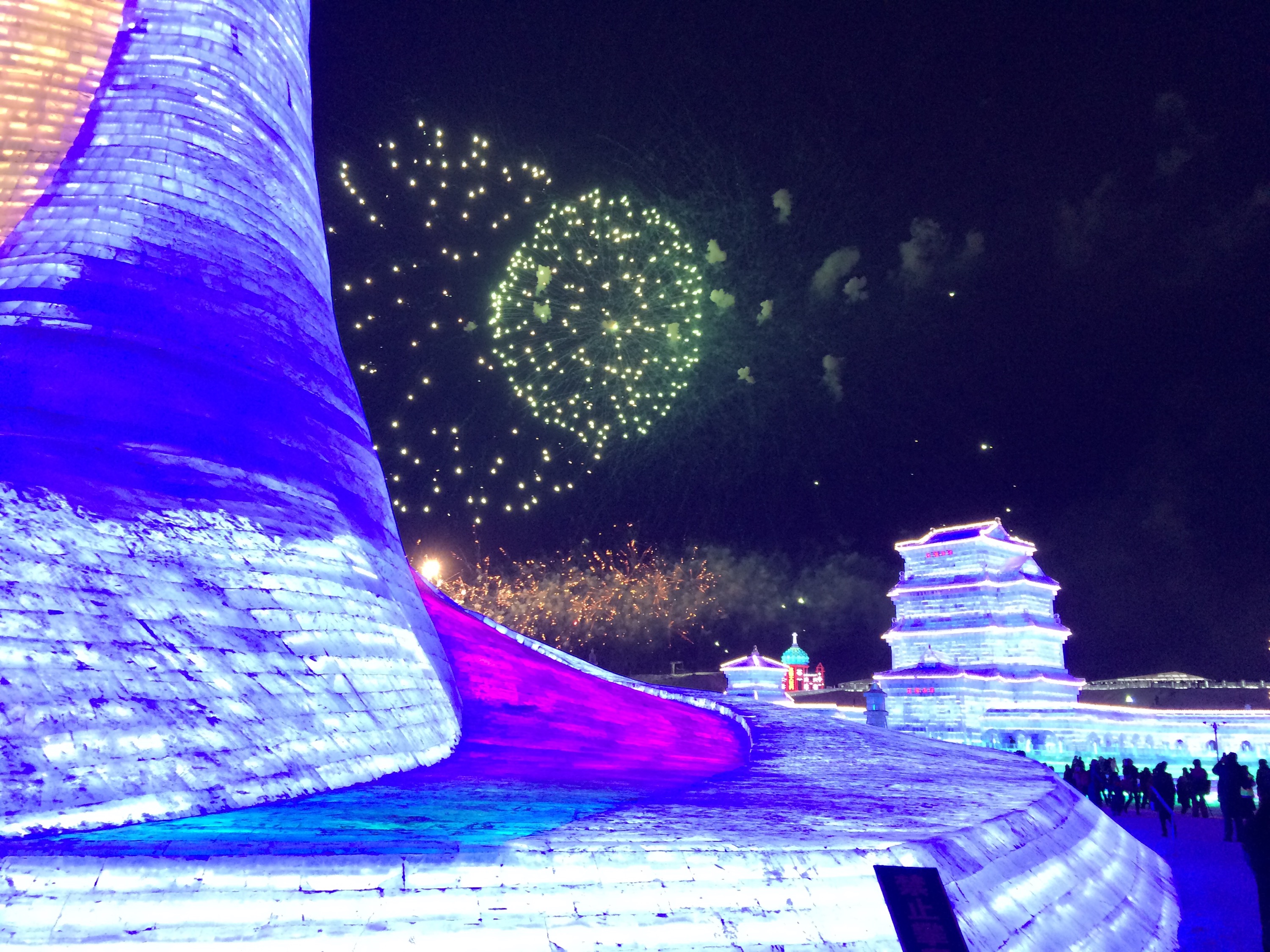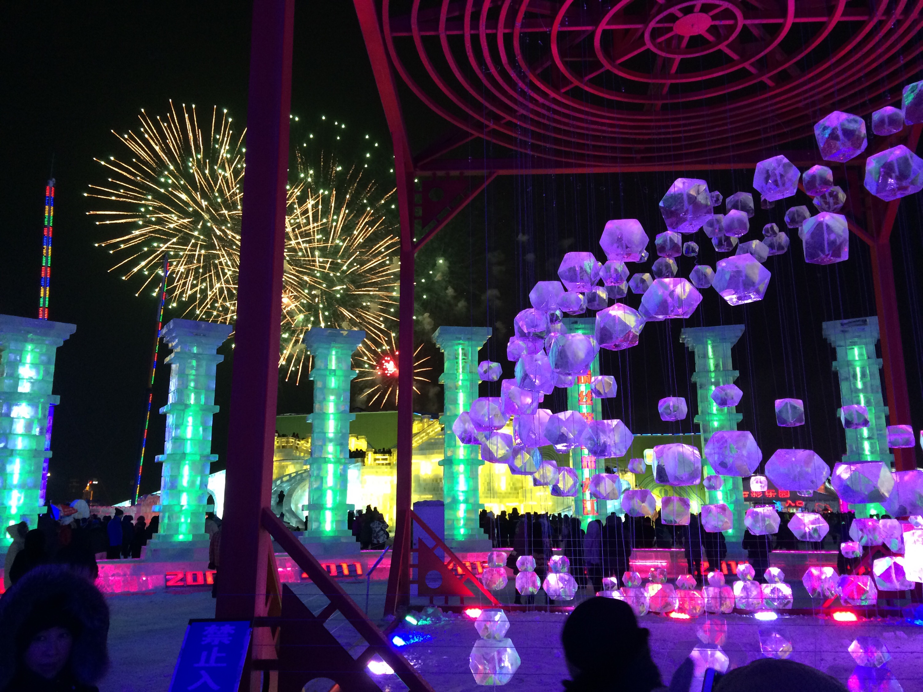 So, this is the deal.  Every year, they hue blocks of ice from the Songhua River, stack them into amazing structures, and light them up.