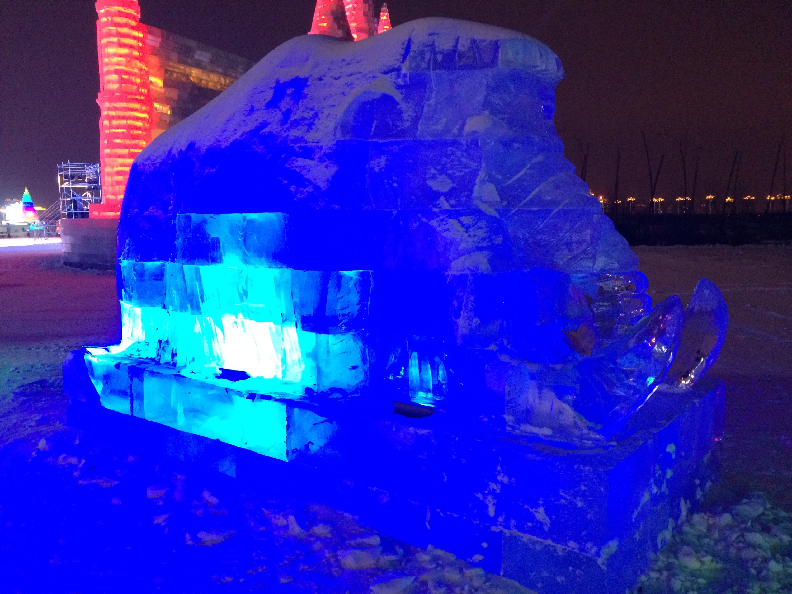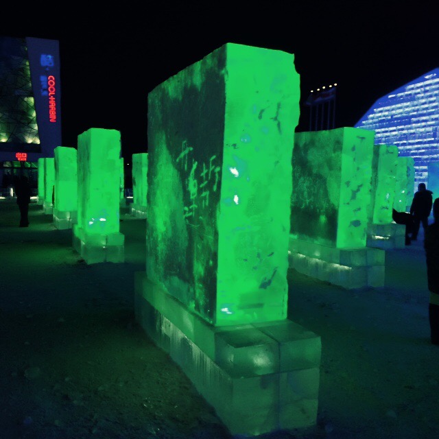Lest we forget the Chinese name for this festival –冰雕节 (bīngdiāo jié meaning “ice carving festival”) — there were these blocks of ice, ready for artisans to work their craft.