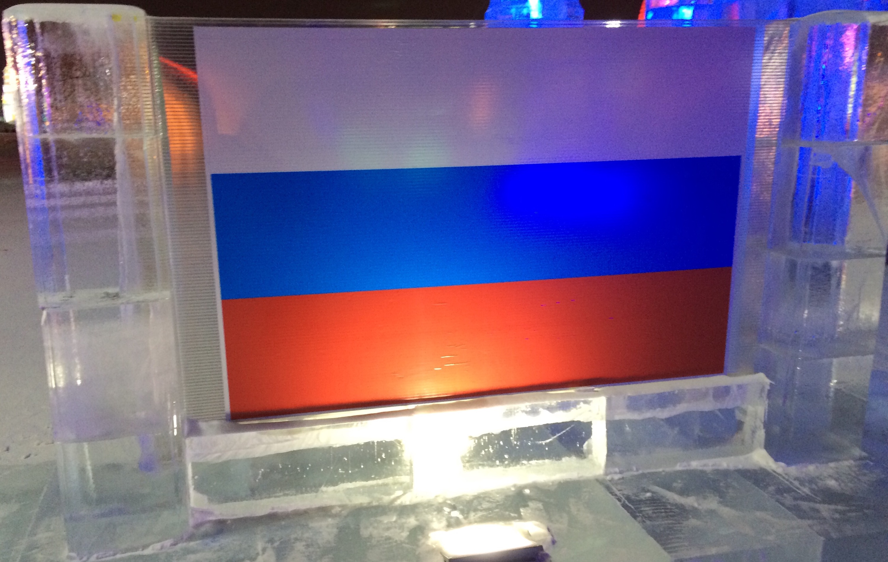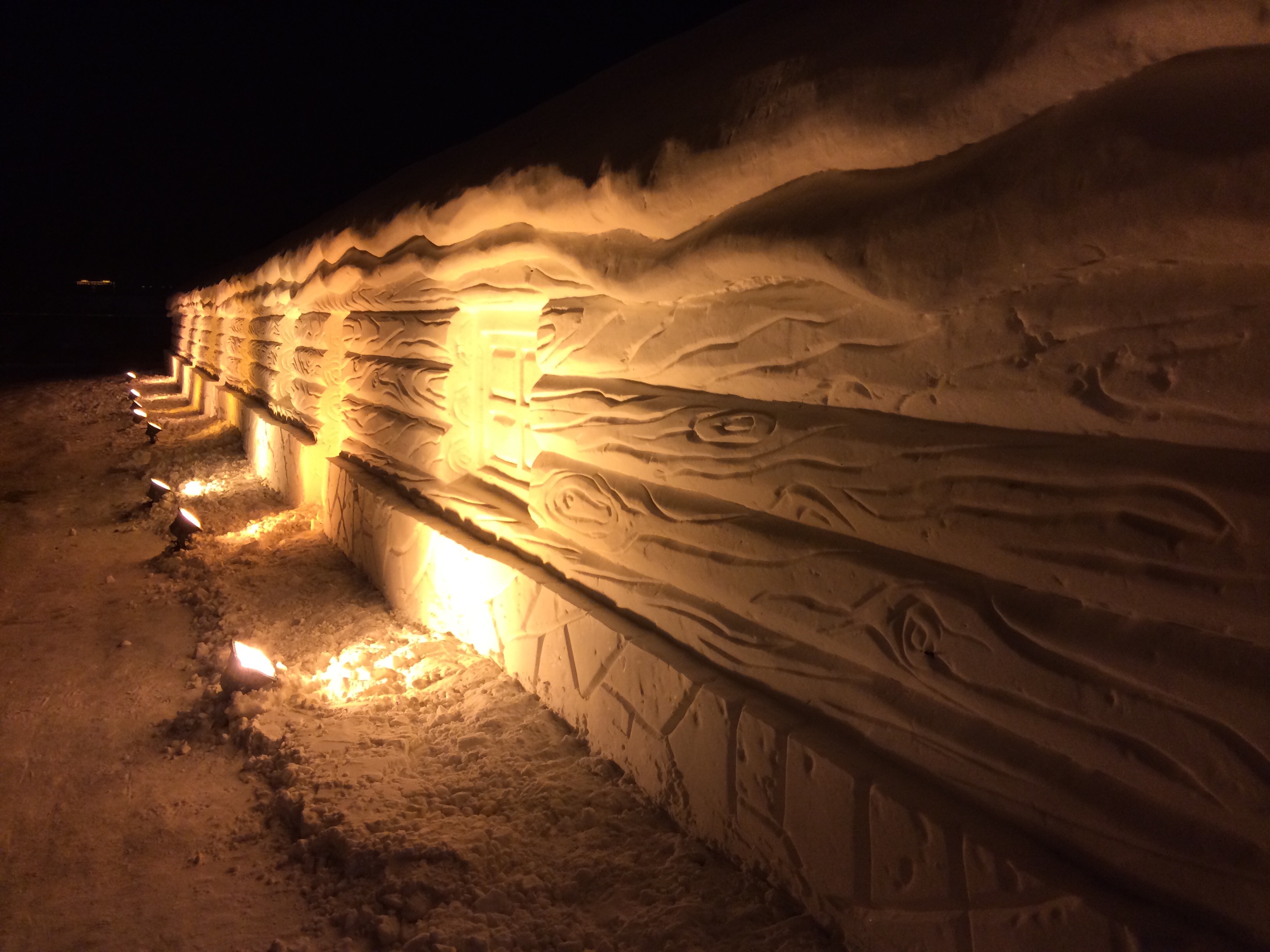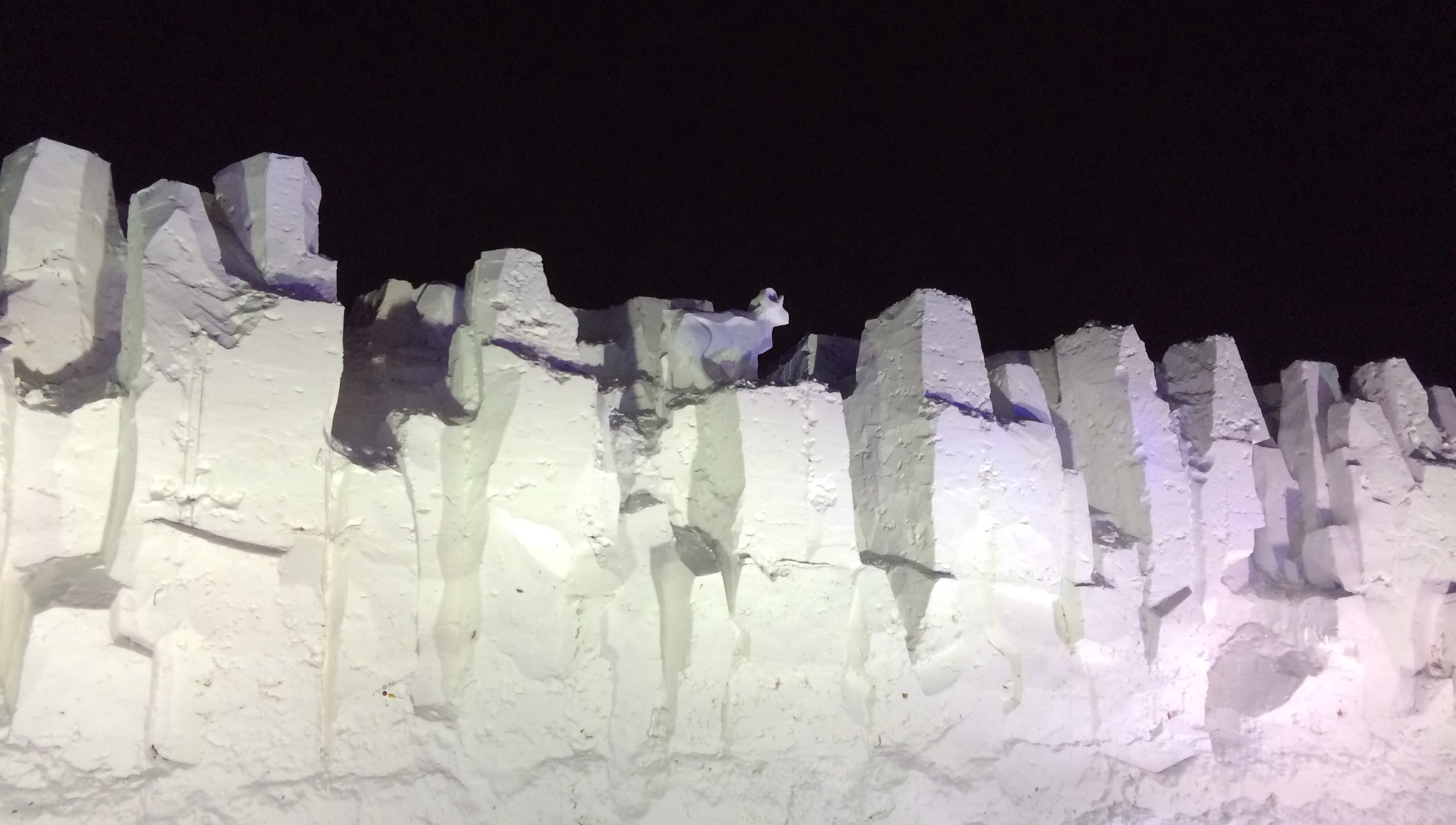 Not sure what a woolly mammoth has to do with Russia, but it was certainly appropriate given the temperature.  The Russians also carved a cliff out of packed snow which reminded me of the Grand Canyon.